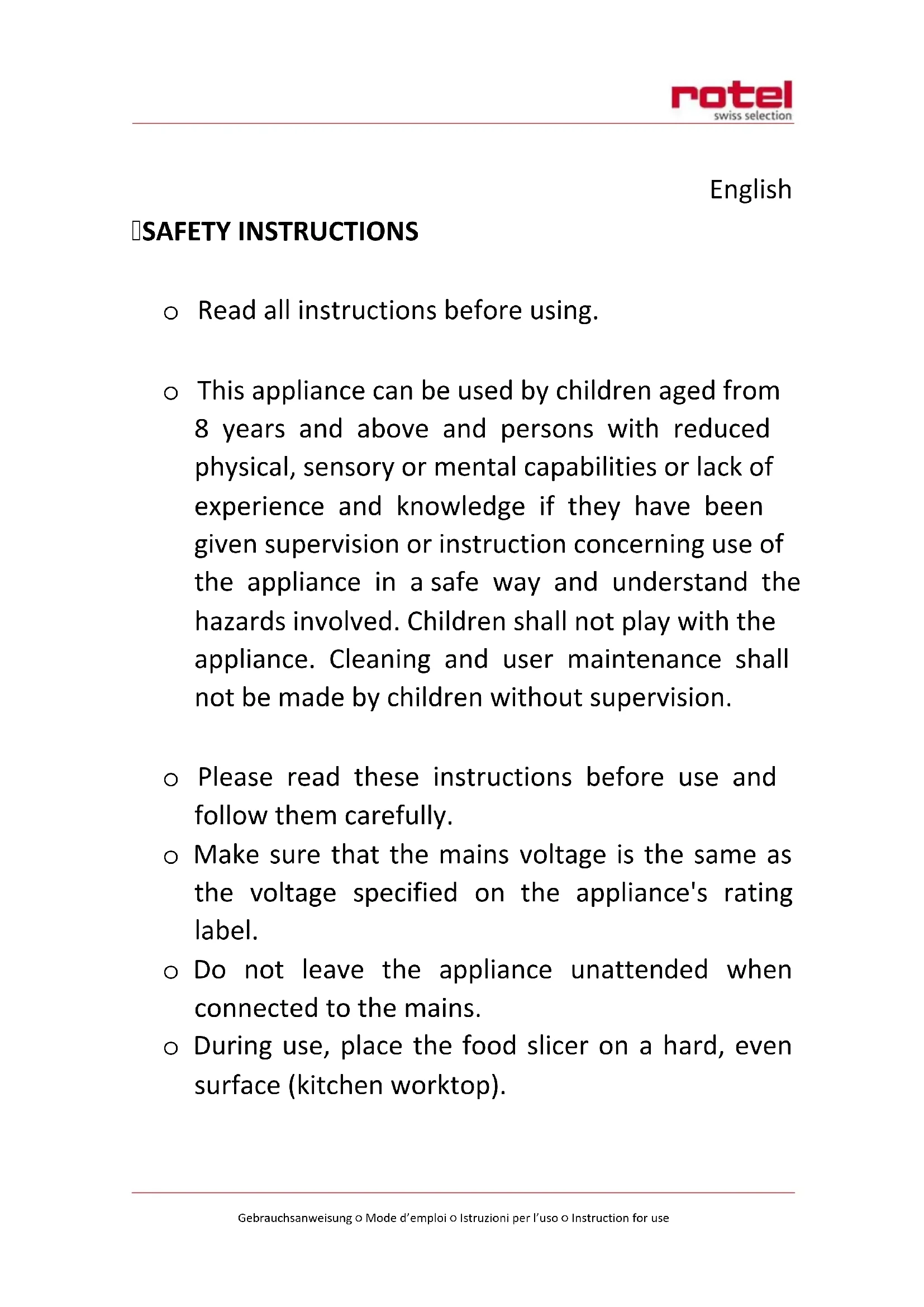 During use, place the food slicer on a hard, even surface (kitchen worktop).