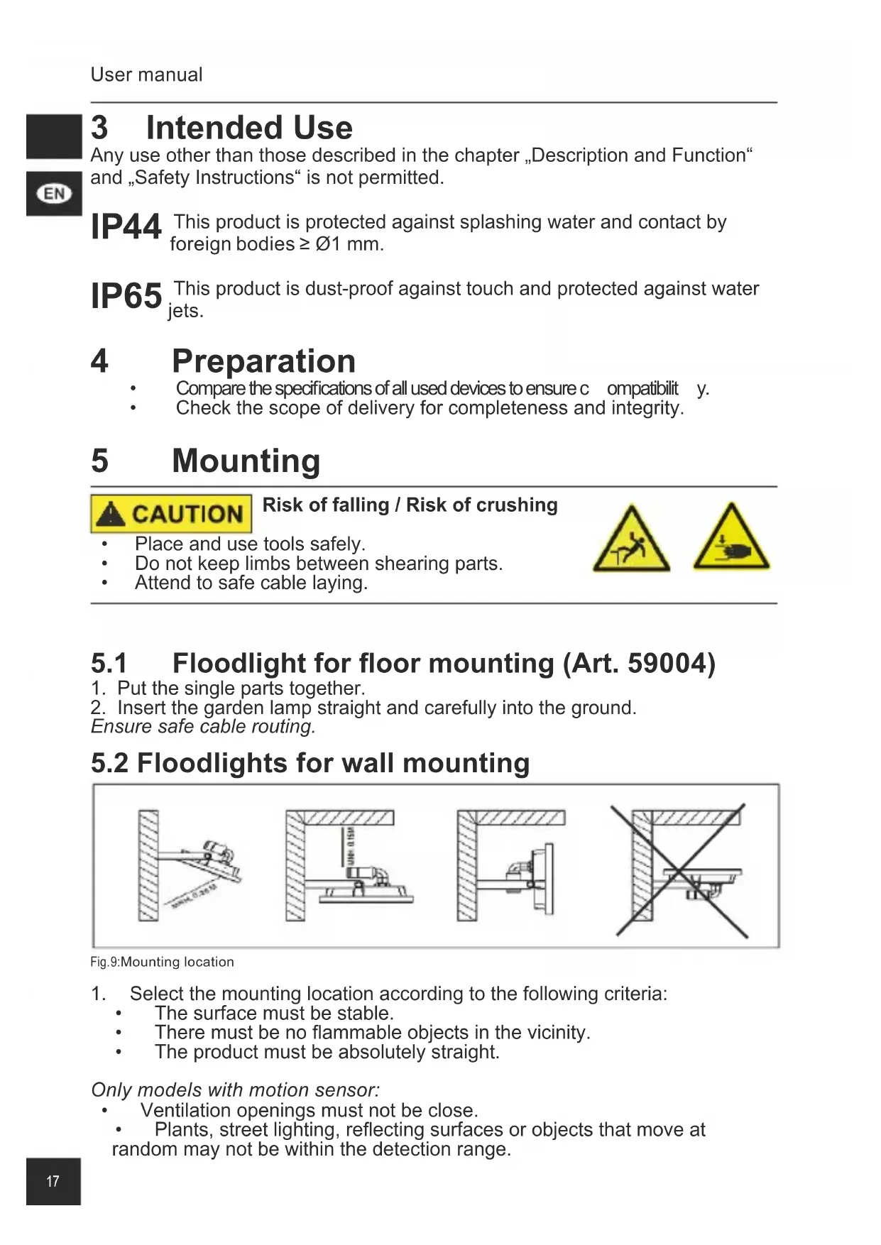 - Plants,streetlighting,reectingsurfacesorobjectsthatmoveat random may not be within the detection range.18 Fig . 10: FlFloodlights for wall mounting - Reach