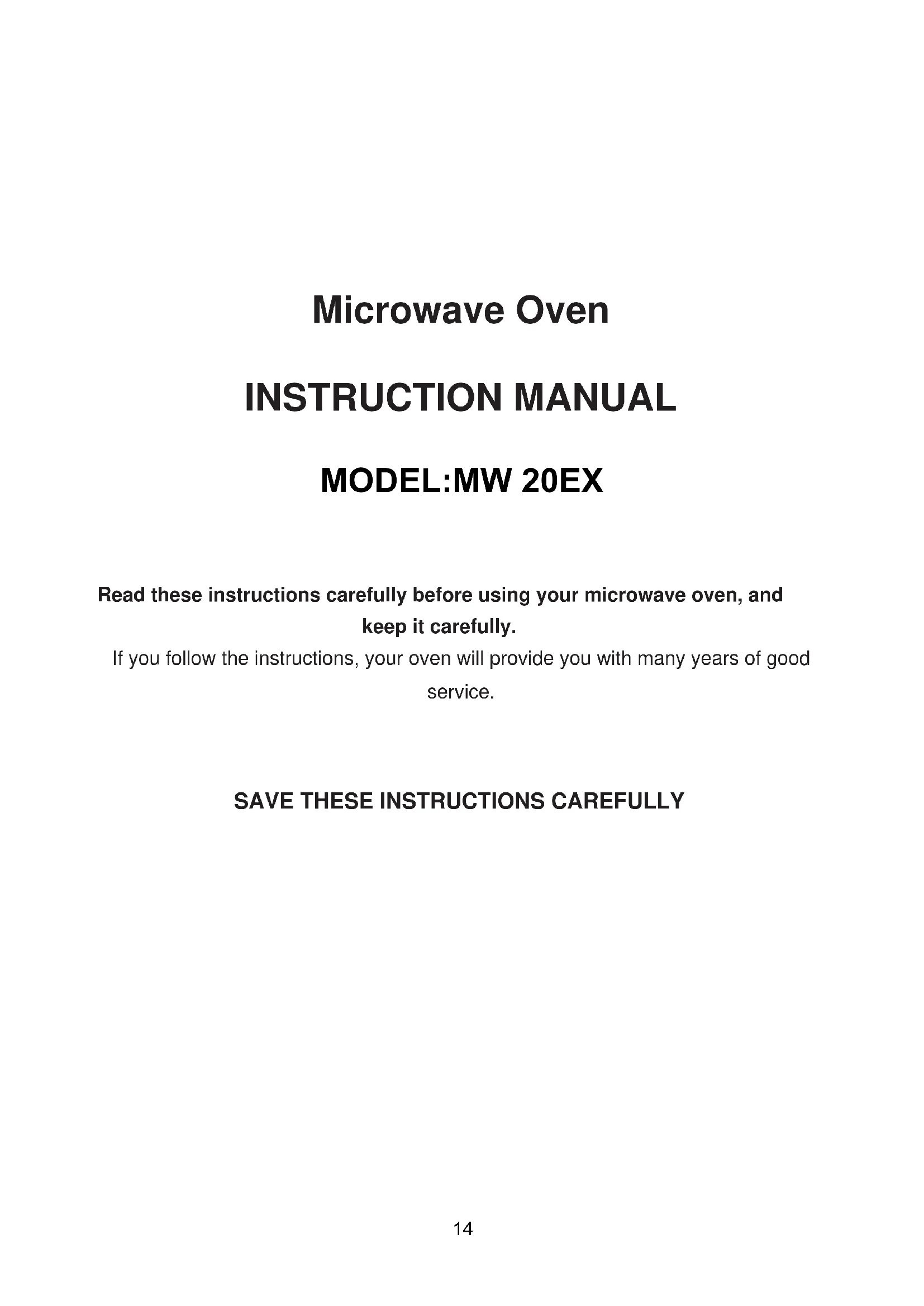 13Microwave Oven INSTRUCTION MANUAL Read these instructions carefully before using your microwave oven, and keep it carefully. If you follow the instructions, your oven will provide you with many years of good service.