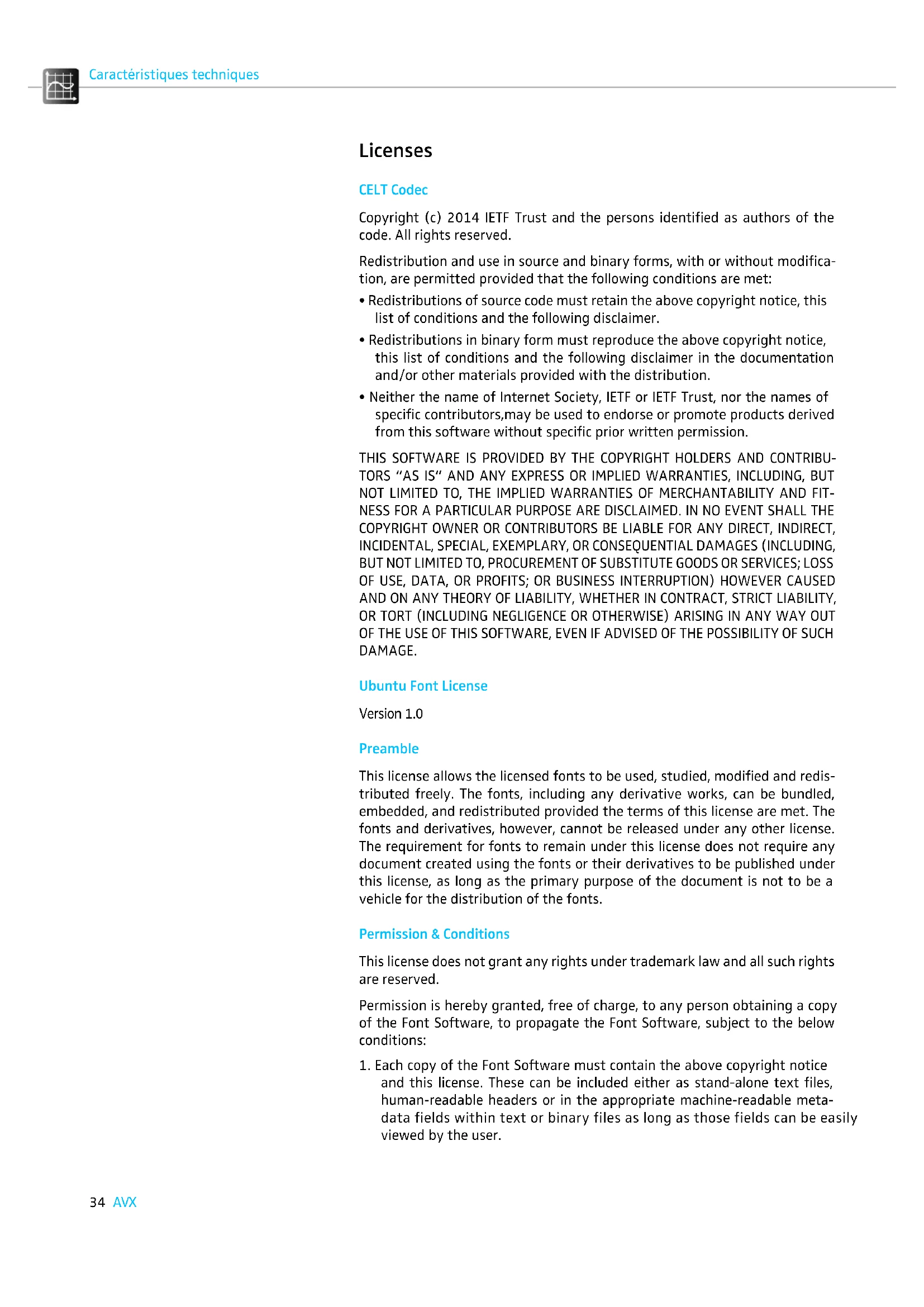 and this license. These can be included either as stand-alone text files, human-readable headers or in the appropriate machine-readable meta- data fields within text or binary files as long as those fields can be easily viewed by the user.AVX 35 Caractéristiques techniques