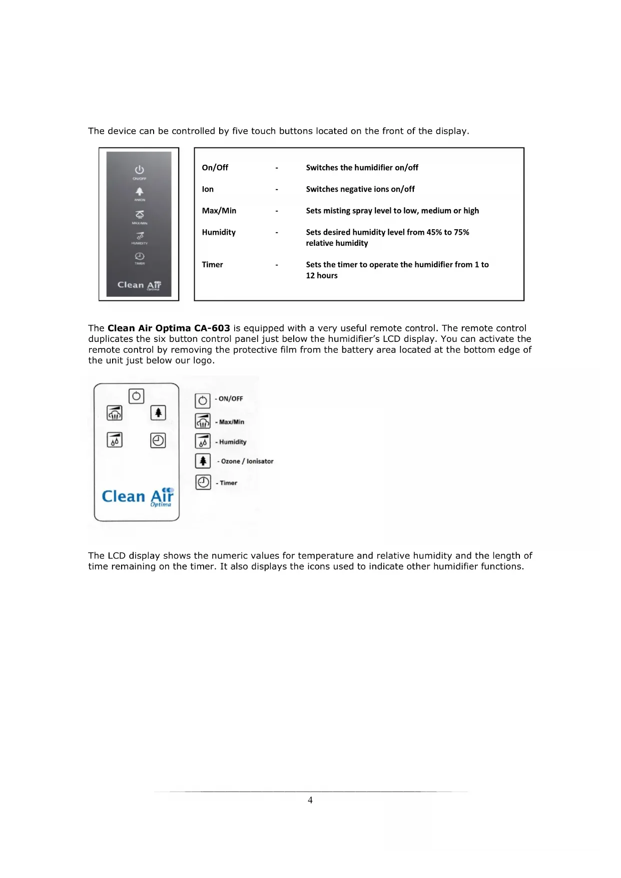 Download the instructions for your Humidifier in PDF format for free! Find your manual CA603 - Clean Air Optima and take your electronic device back in hand. On this page are published all the documents necessary for the use of your device. CA603 by Clean Air Optima.