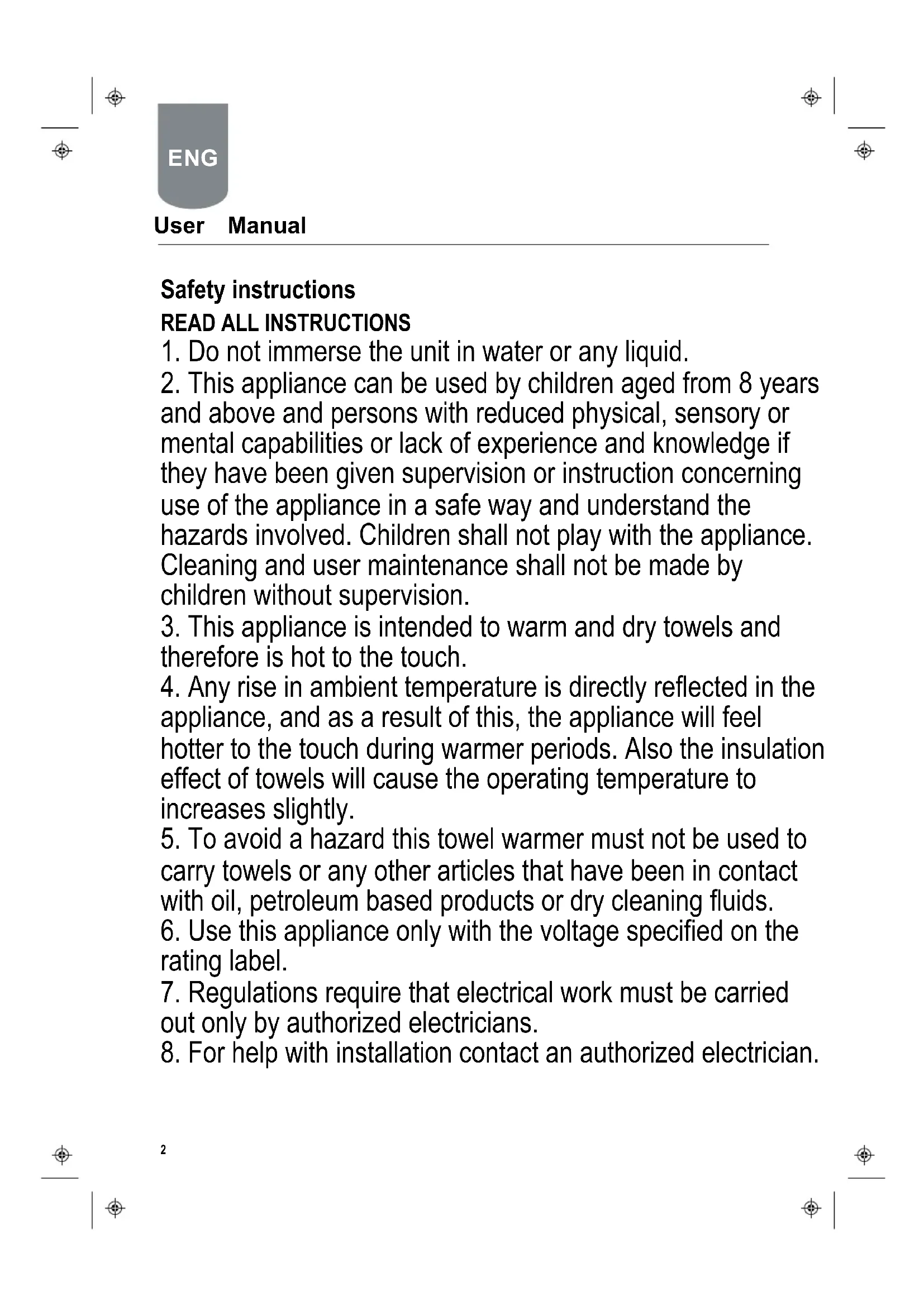 2. This appliance can be used by children aged from 8 years