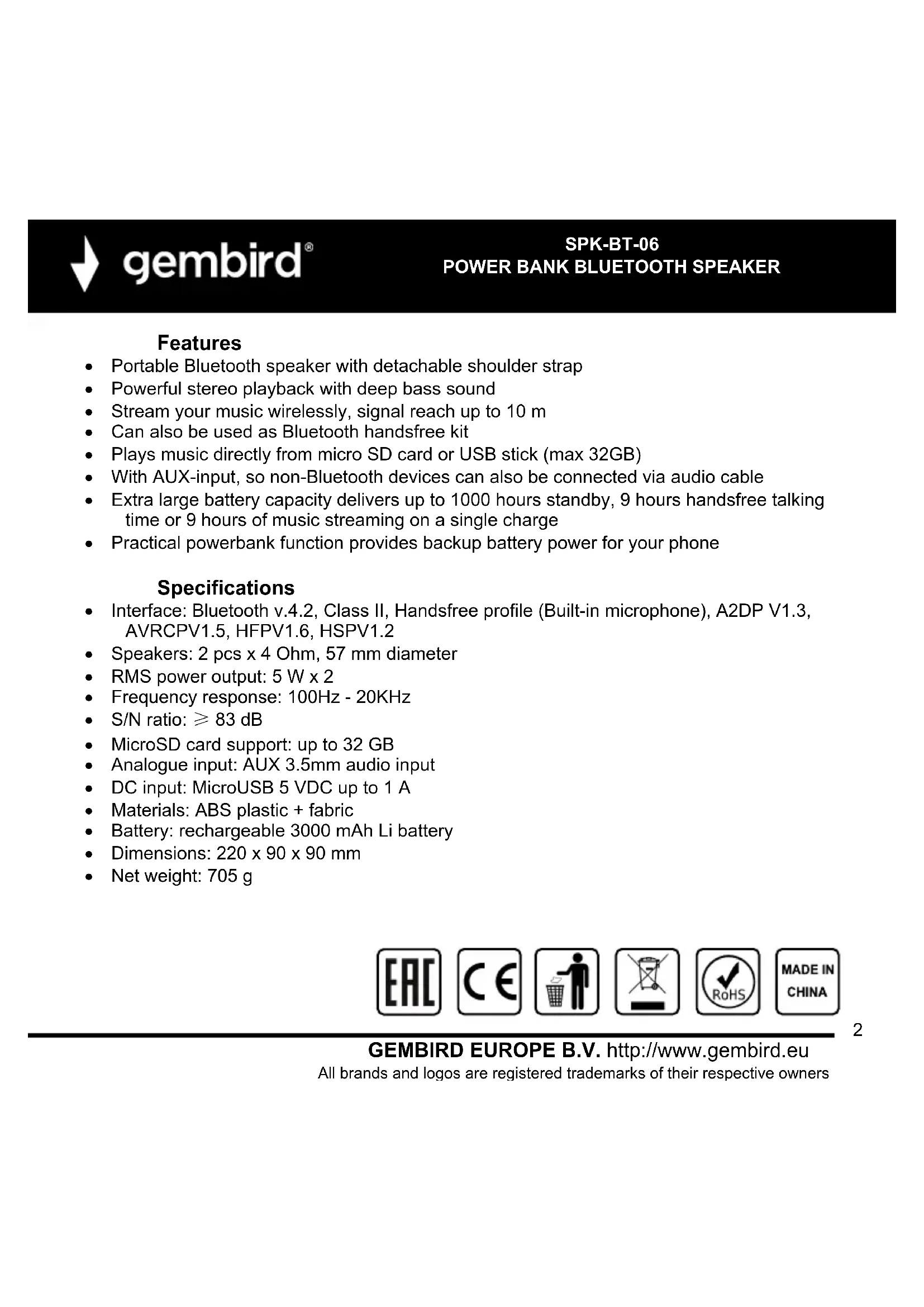 Find the device manual for free SPKBT06B Gembird in PDF.