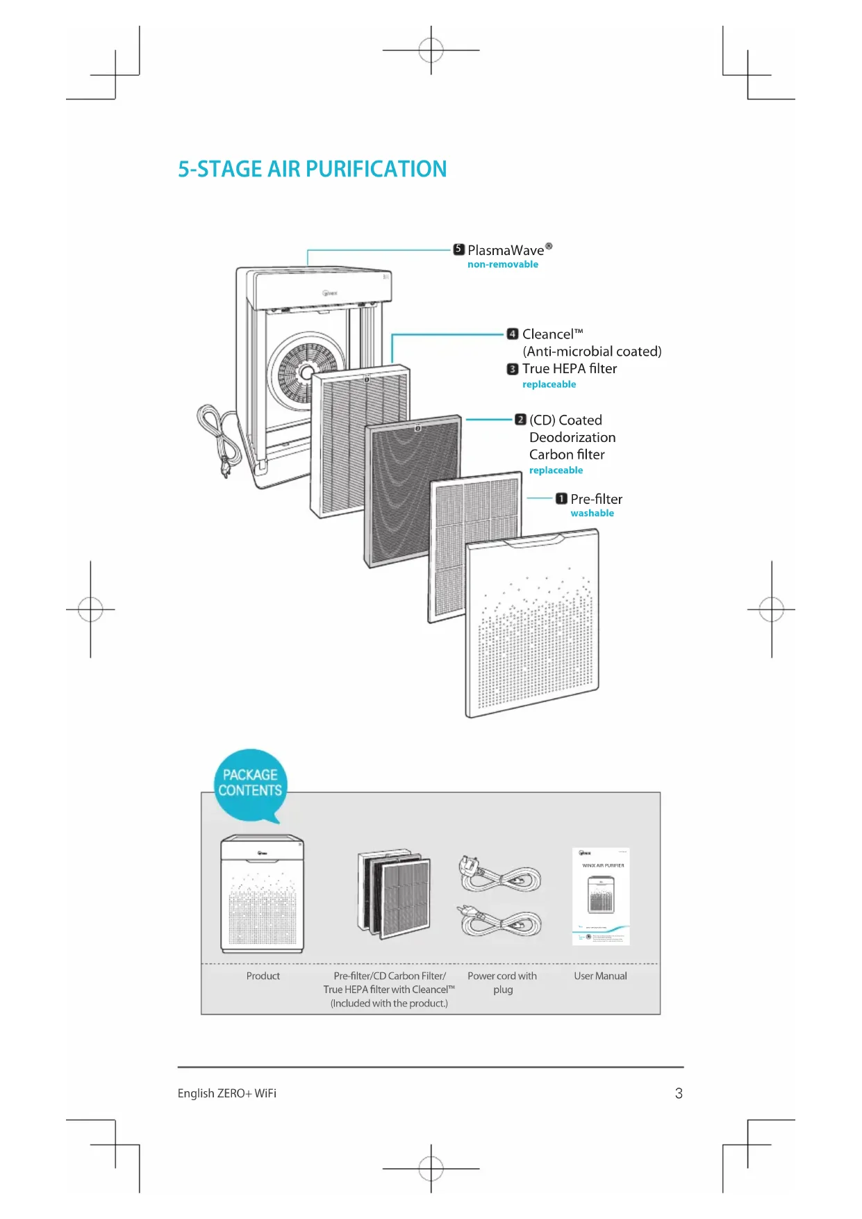 PlasmaWave True HEPA lter (CD) Coated Deodorization Carbon lter Pre-lter non-removablereplaceablewashablereplaceable Cleancel™ (Anti-microbial coated)