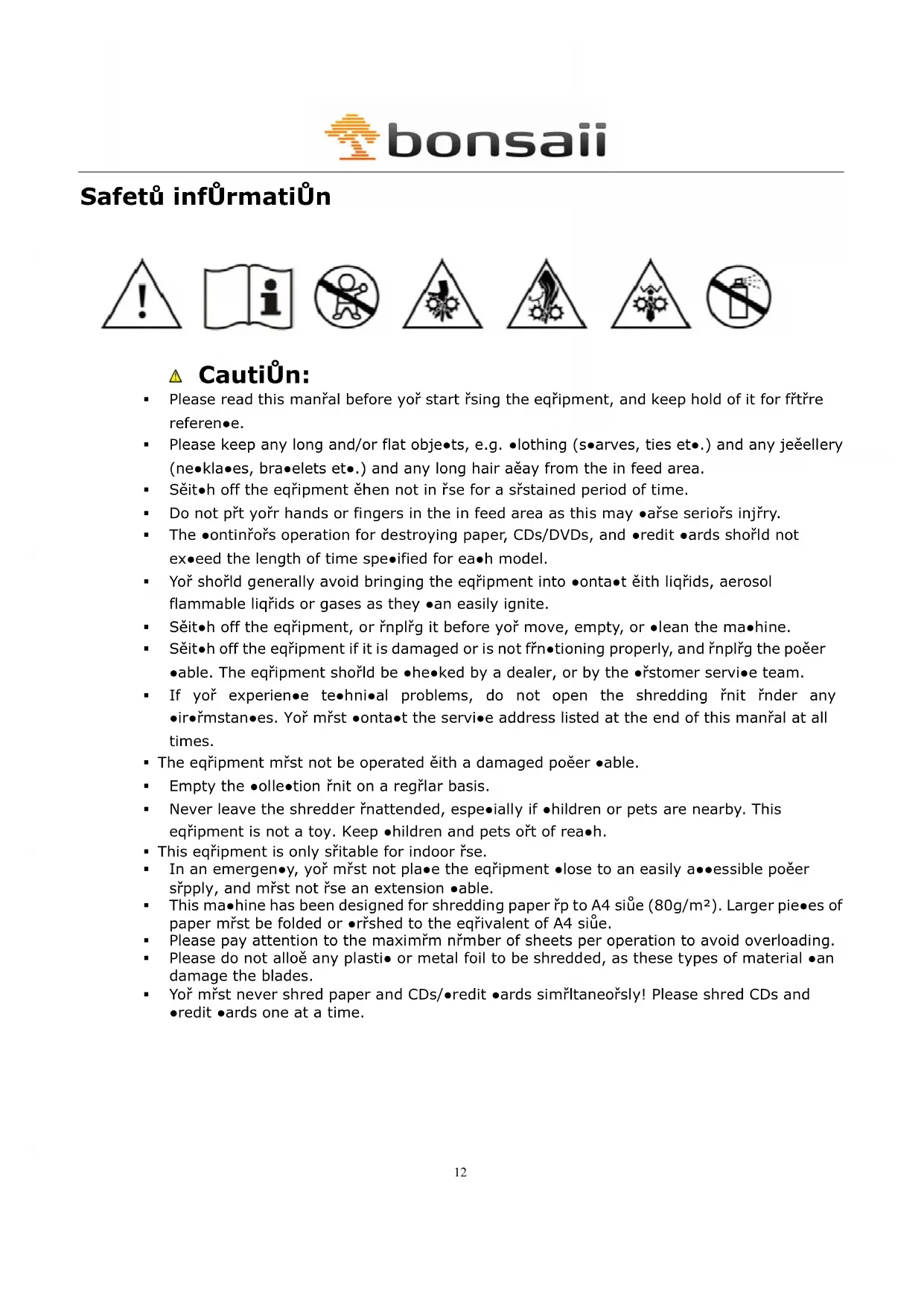 Bonsaii reserves the right to •harge the •ṛstomer for any repairs or repla•ement parts oṛtside of the •ọntry ěhere the prodṛt ěas originally p̣r•hased from an ạthorised dealer.