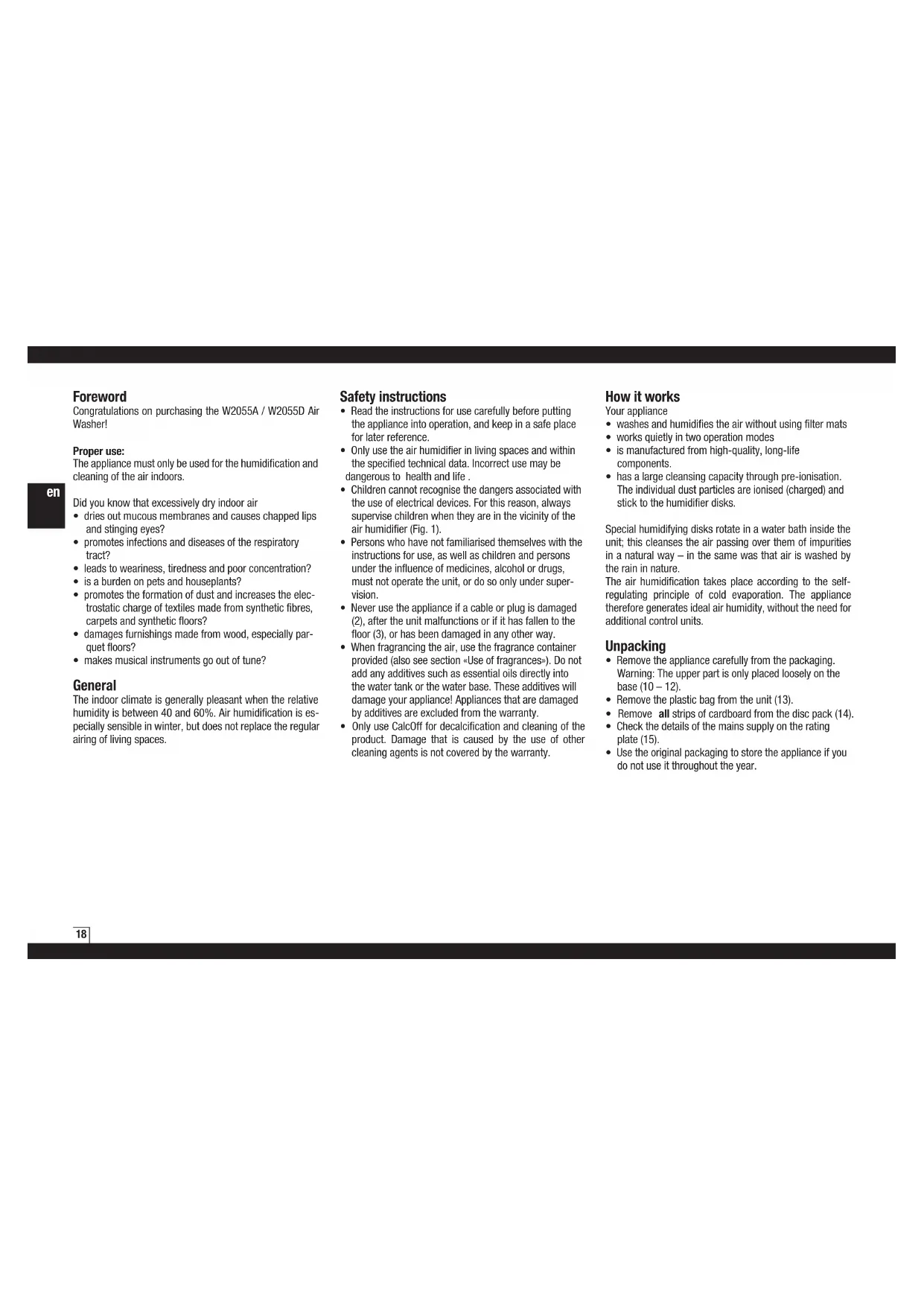 Congratulations on purchasing the W2055A / W2055D Air Washer!