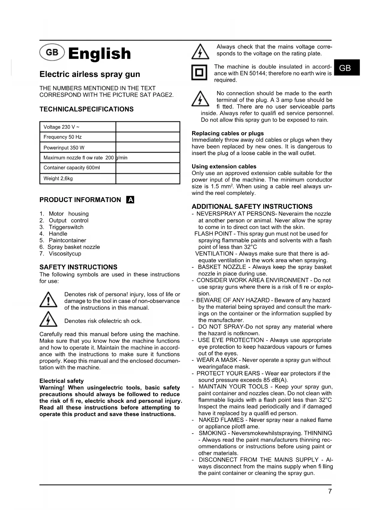 - DISCONNECT FROM THE MAINS SUPPLY - Always disconnect from the mains supply when filling the paint container or cleaning the spray gun.