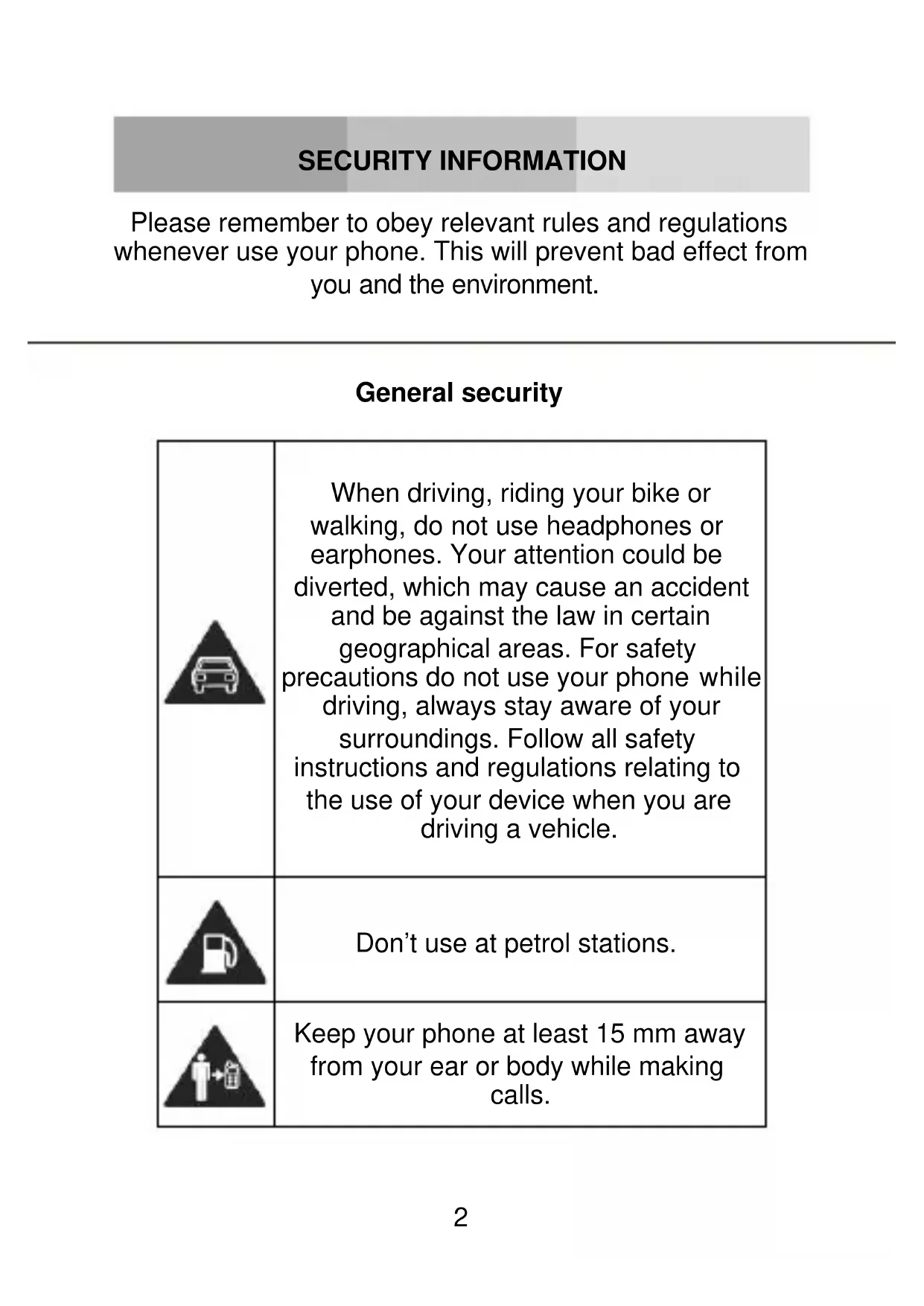 SECURITY INFORMATION Please remember to obey relevant rules and regulations whenever use your phone. This will prevent bad effect from you and the environment.