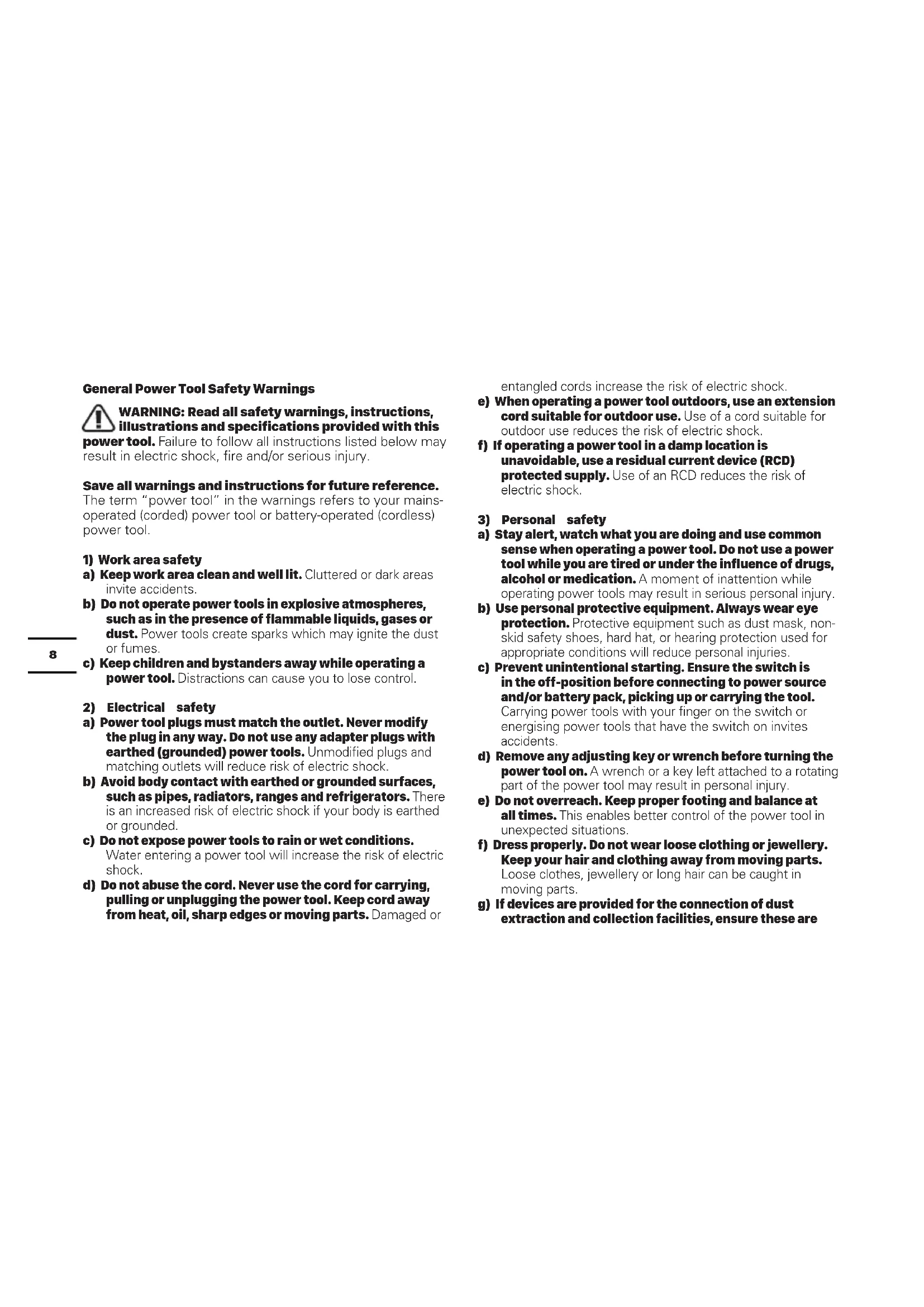 g) Use the power tool, accessories and tool bits etc. in accordance with these instructions, taking into account the working conditions and the work to be performed.