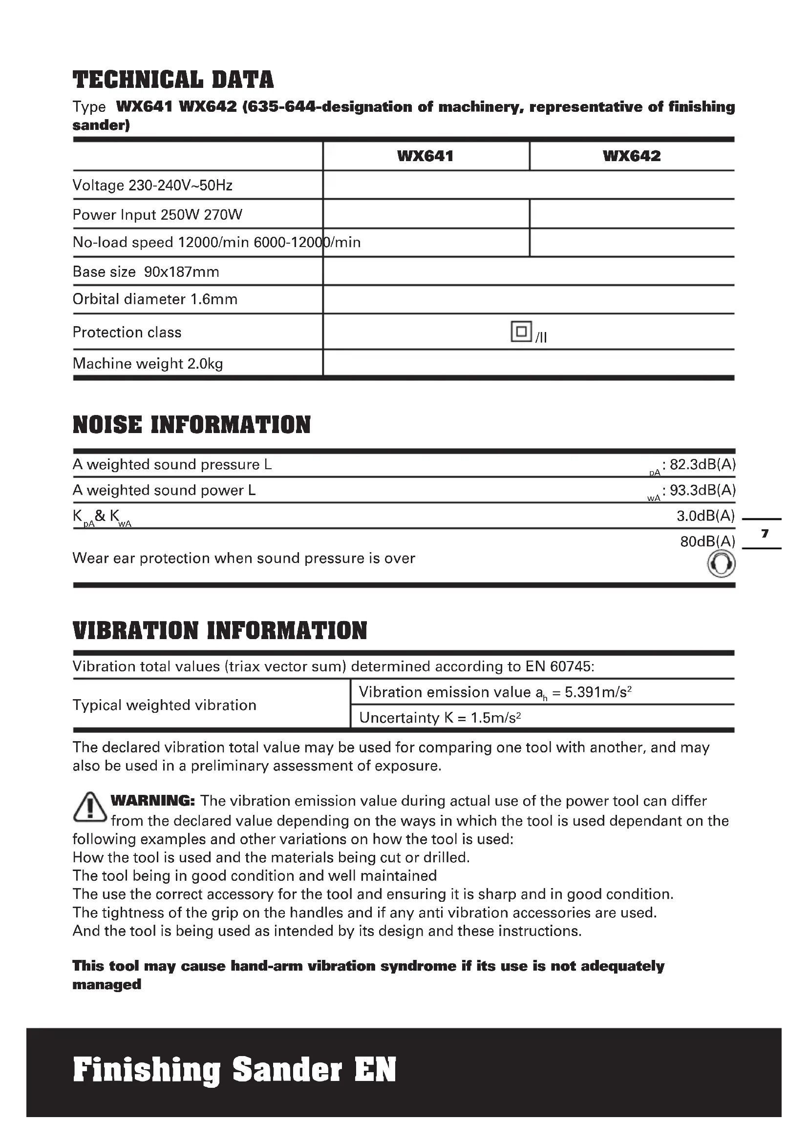 Declare that the product Description WORX FINISHING SANDER Type WX641 WX642 ( 635 - 644 - designation of machinery, representative of FINISHING SANDER) Function Removing surface material using an abrasive medium