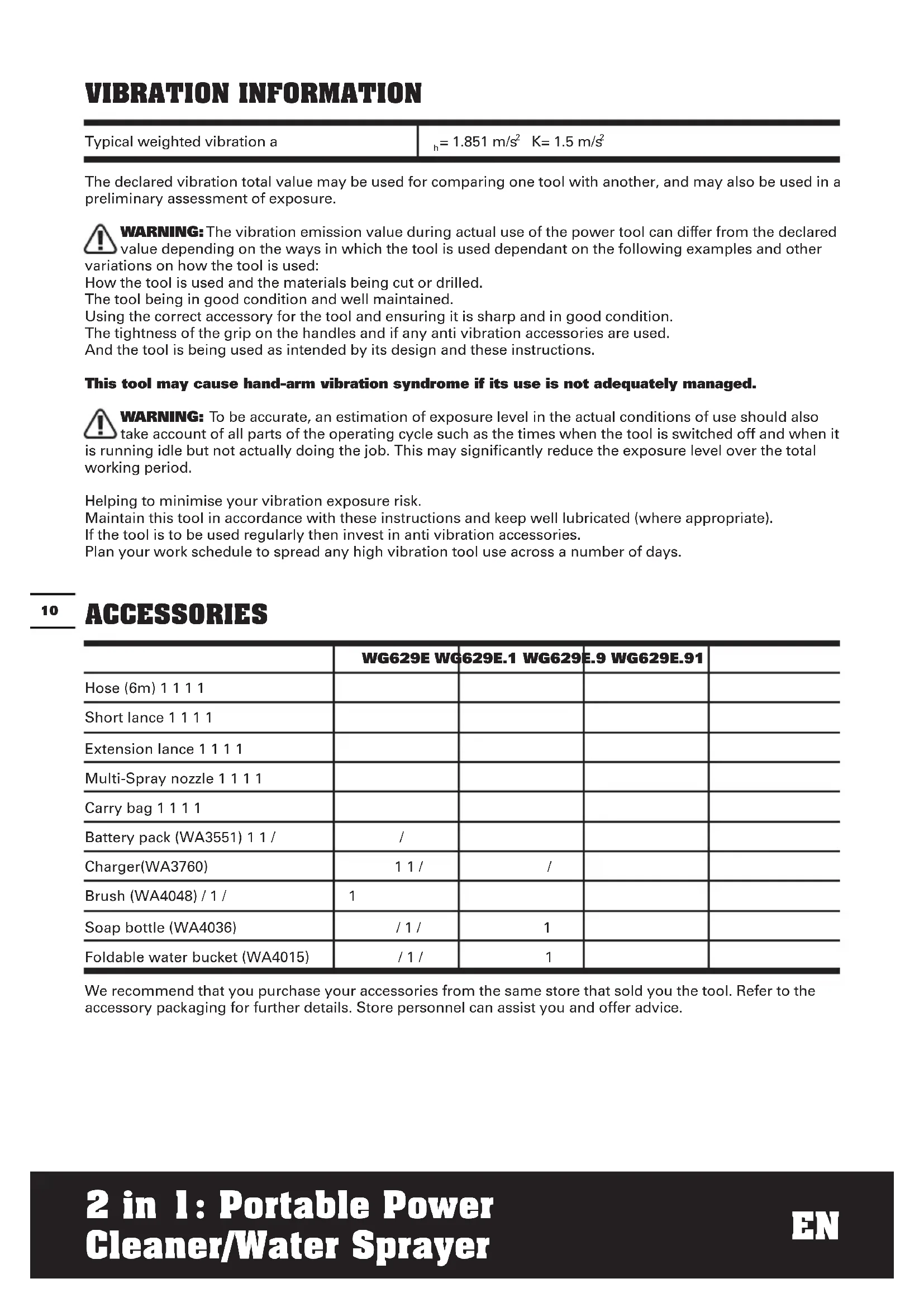 Download the instructions for your Pressure washer in PDF format for free! Find your manual WG629E.1 - WORX and take your electronic device back in hand. On this page are published all the documents necessary for the use of your device. WG629E.1 by WORX.