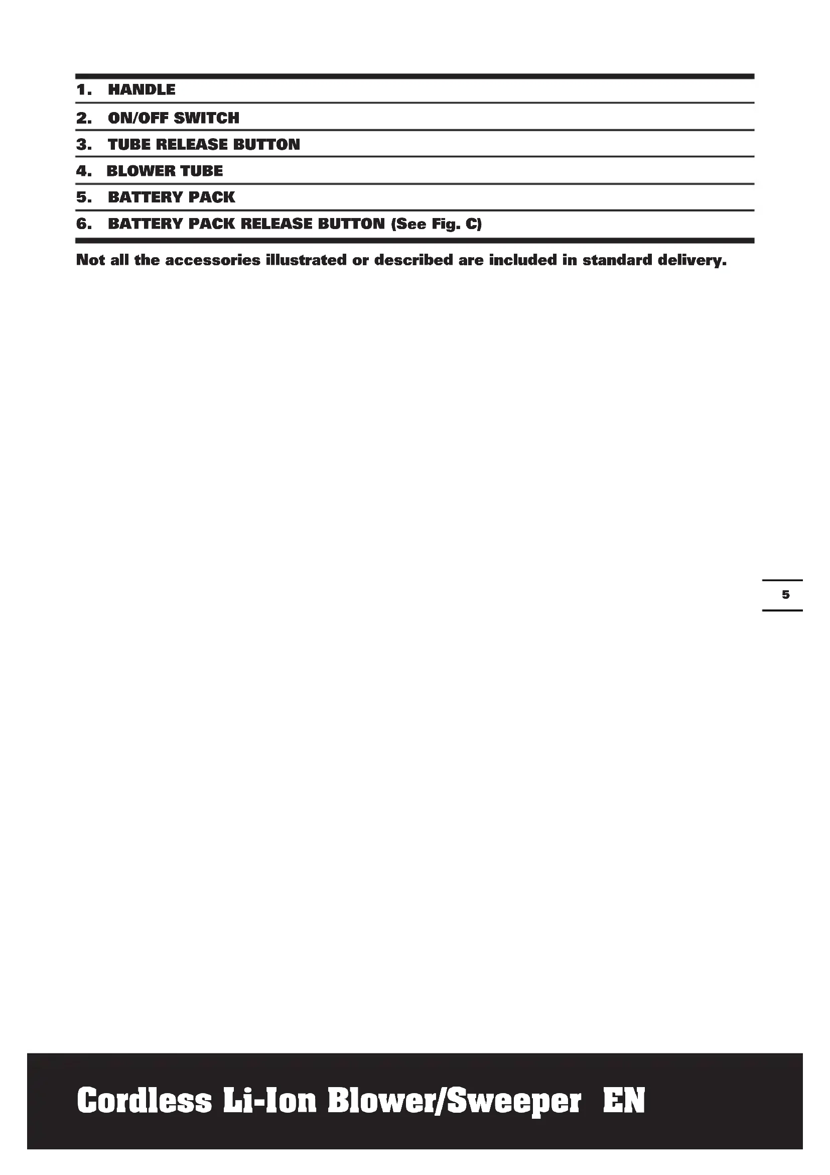 Not all the accessories illustrated or described are included in standard delivery.Cordless Li-Ion Blower/Sweeper EN