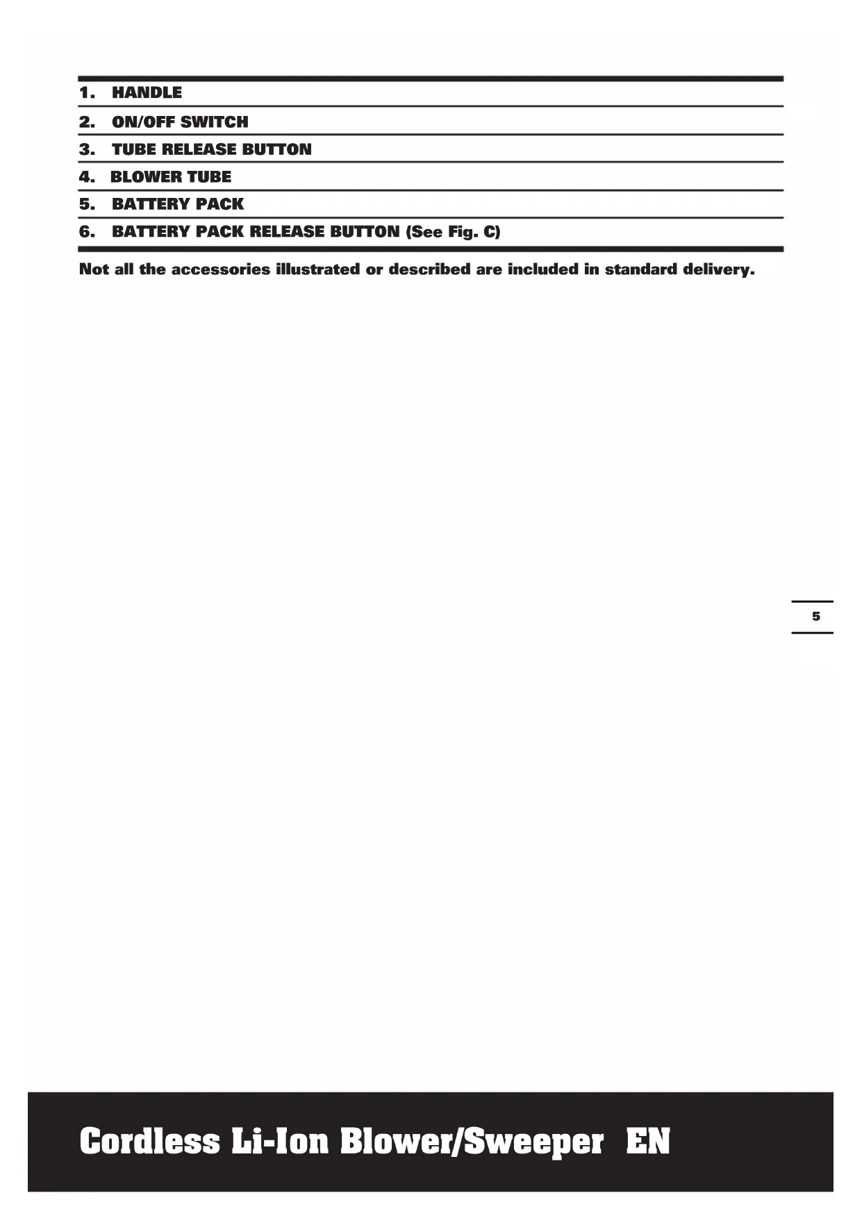 Not all the accessories illustrated or described are included in standard delivery.Cordless Li-Ion Blower/Sweeper EN