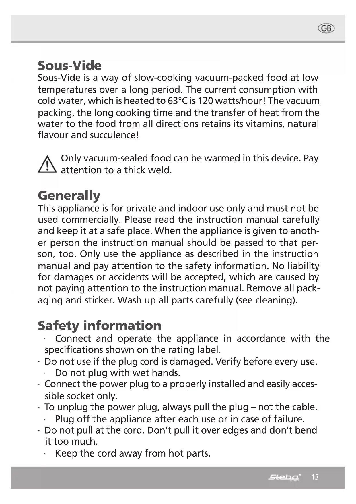 SV 75 - Other kitchen appliances STEBA - Free user manual and instructions