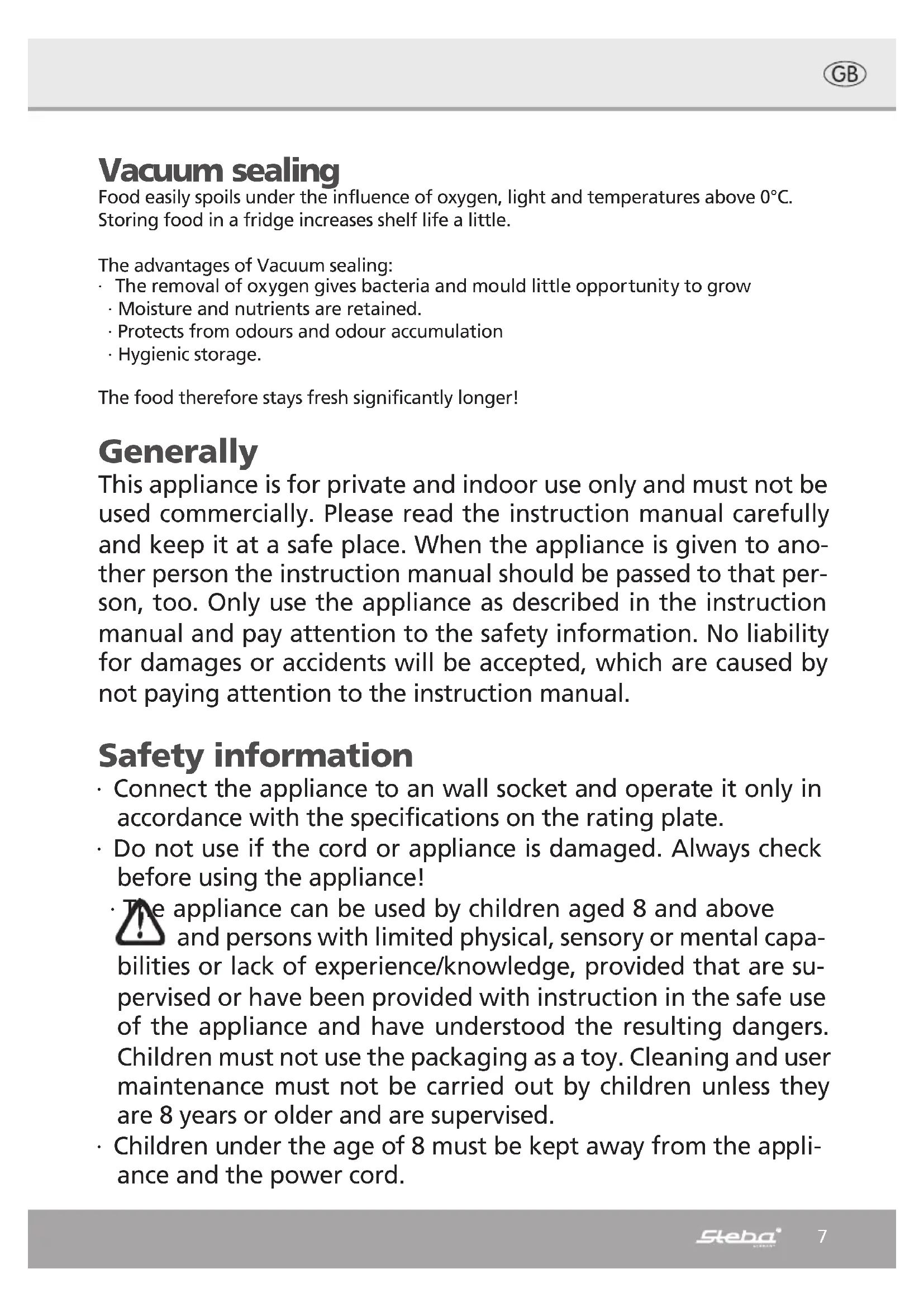 VK6 - Vacuum packaging machines STEBA - Free user manual and instructions