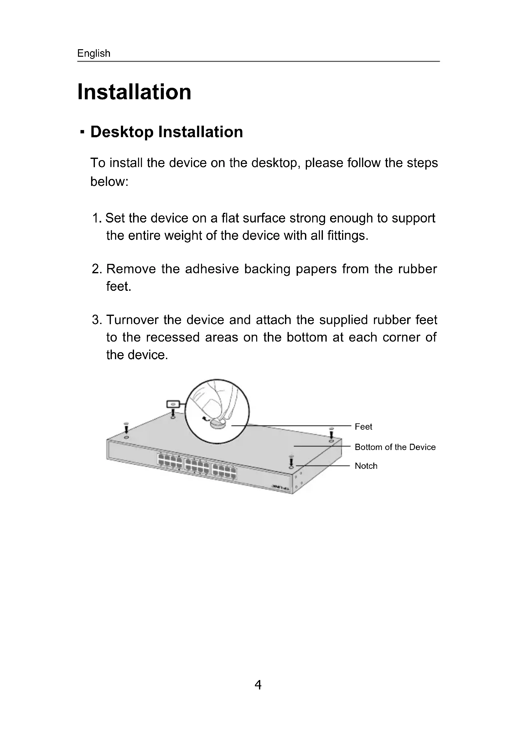 Desktop Installation To install the device on the desktop, please follow the steps below: