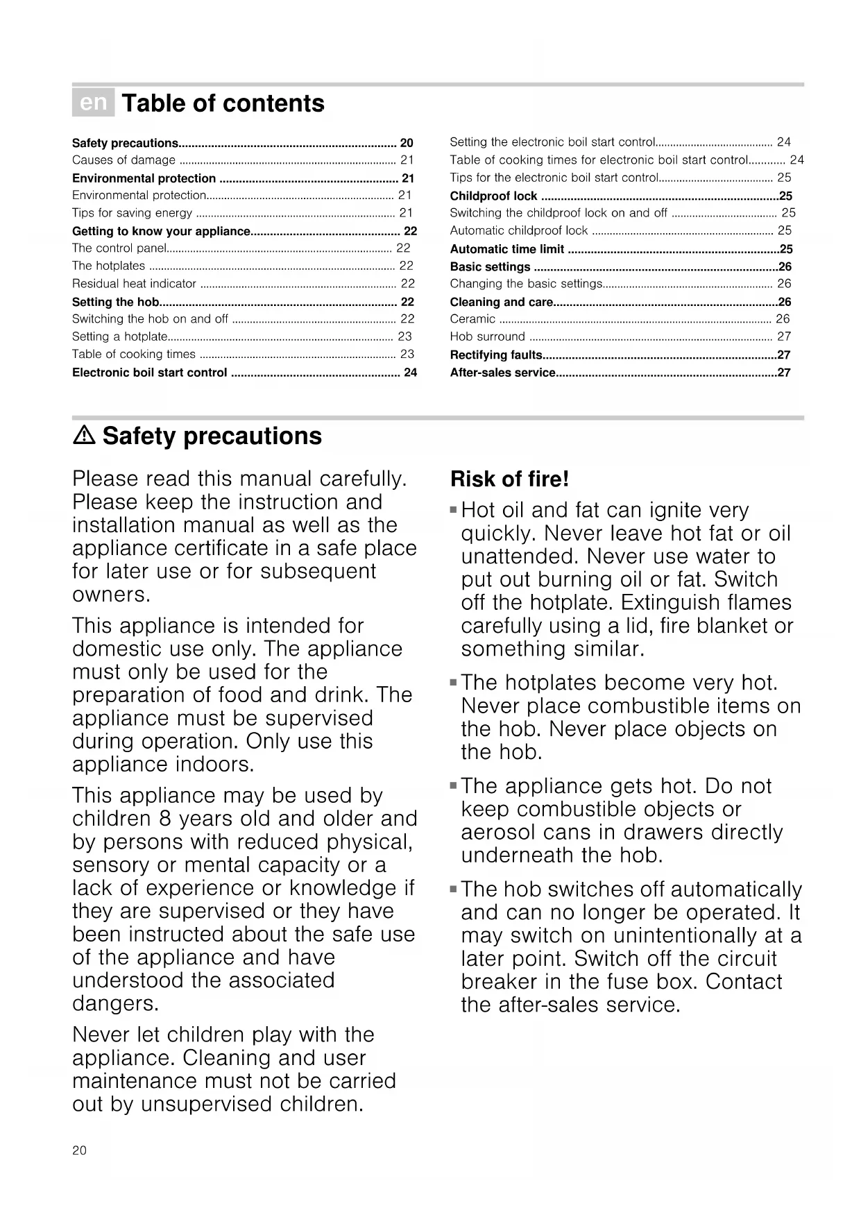 The hotplates and the area around them get very hot. Never touch the hot surfaces. Keep children away. Risk of burns!