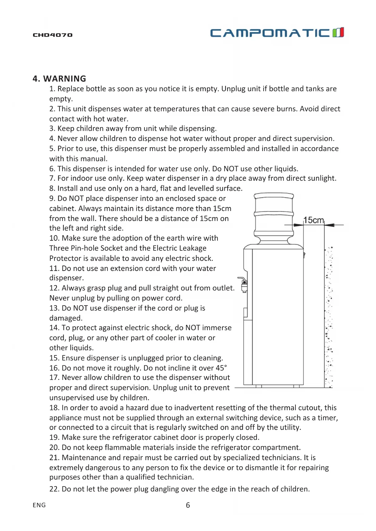 CHD4070B - Water dispenser Campomatic - Free user manual and instructions