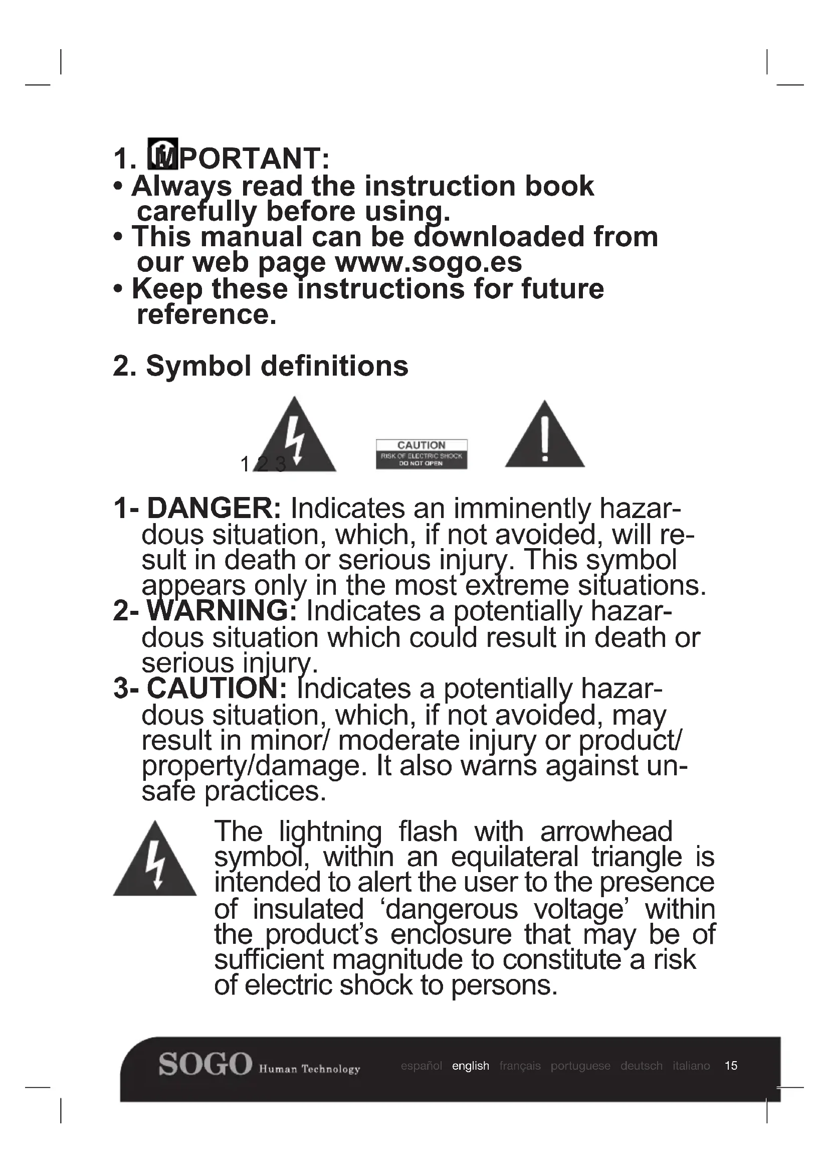 - The unit must be used only for the intended purposes. No liability is accepted for damages General precautions during the use of electrical equipment17 español english français portuguese deutsch italiano arising from improper use or wrong handling.