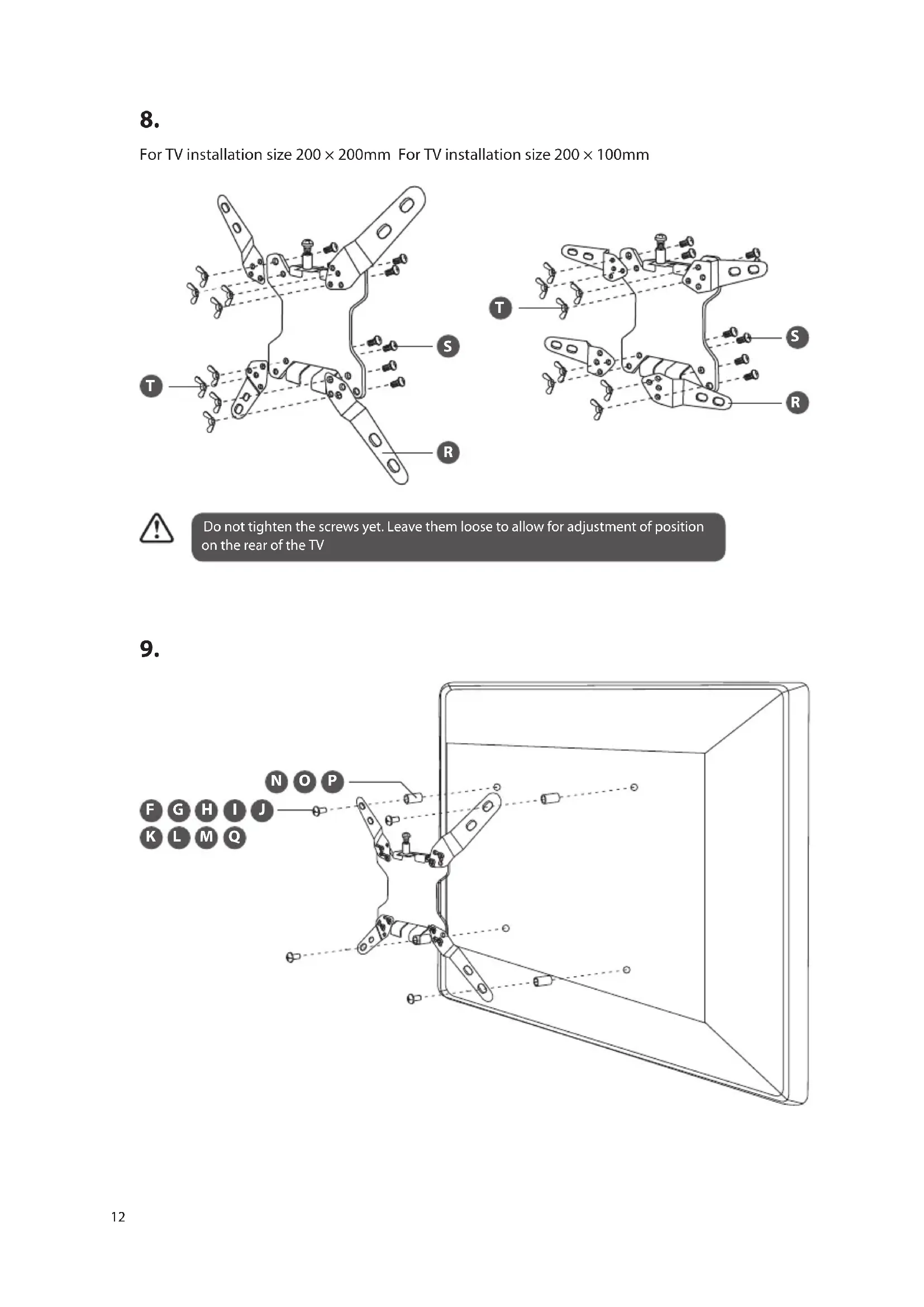 Do not tighten the screws yet. Leave them loose to allow for adjustment of position on the rear of the TV