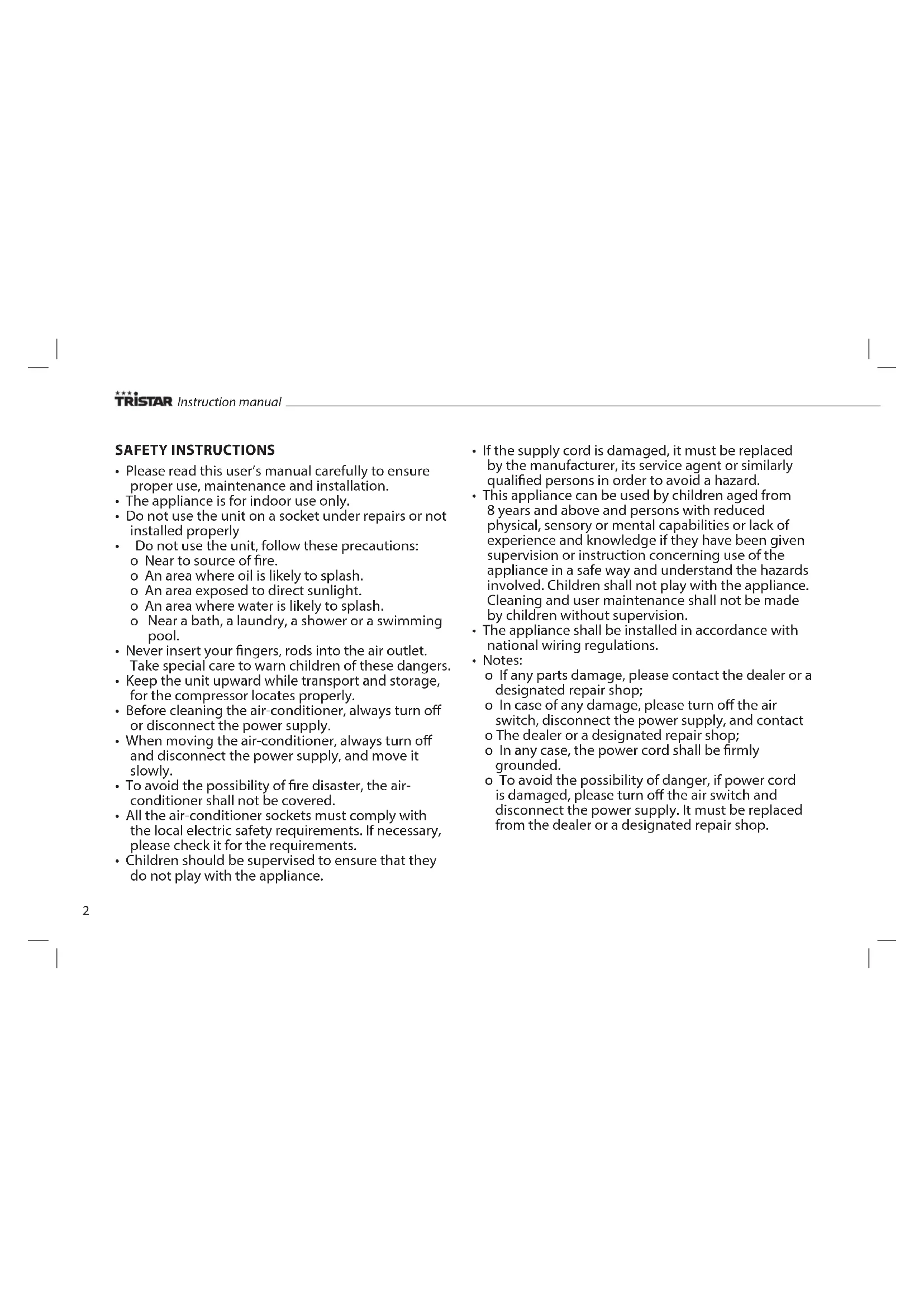 AC5527PR - Air Conditioning TRISTAR - Free user manual and instructions