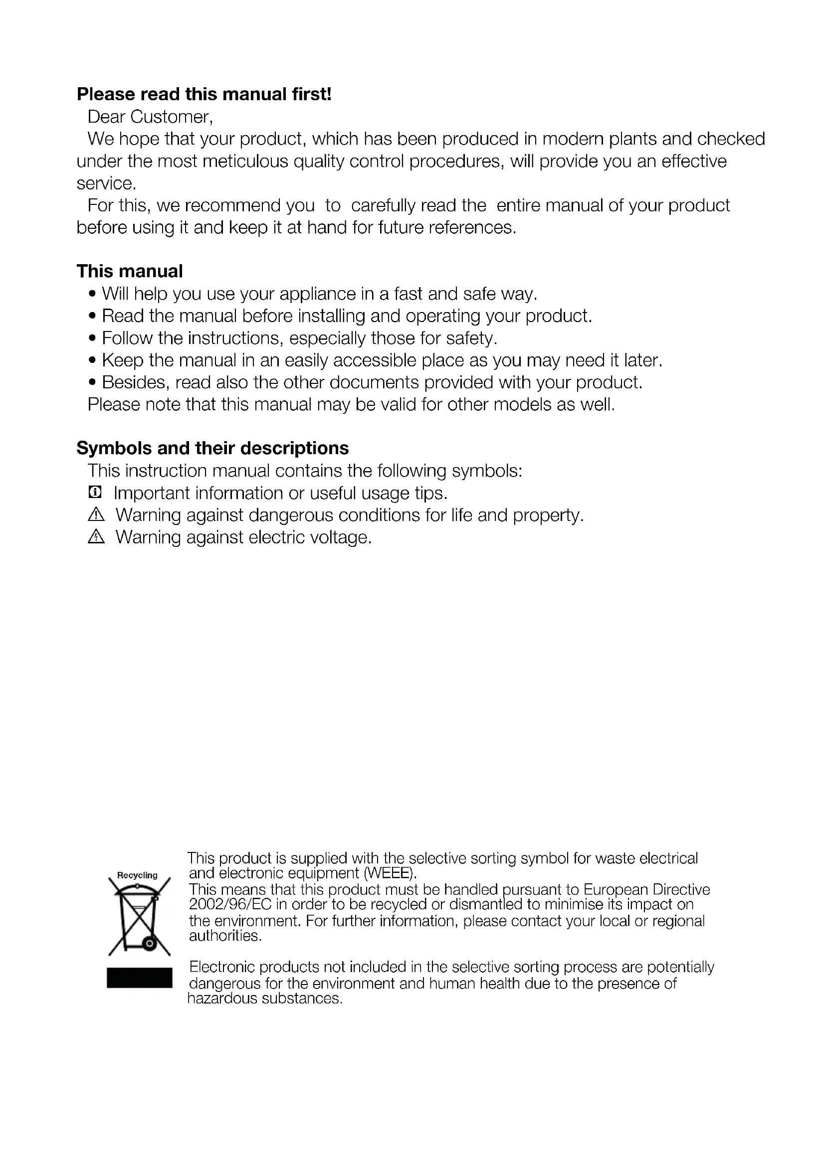 - Will help you use your appliance in a fast and safe way.