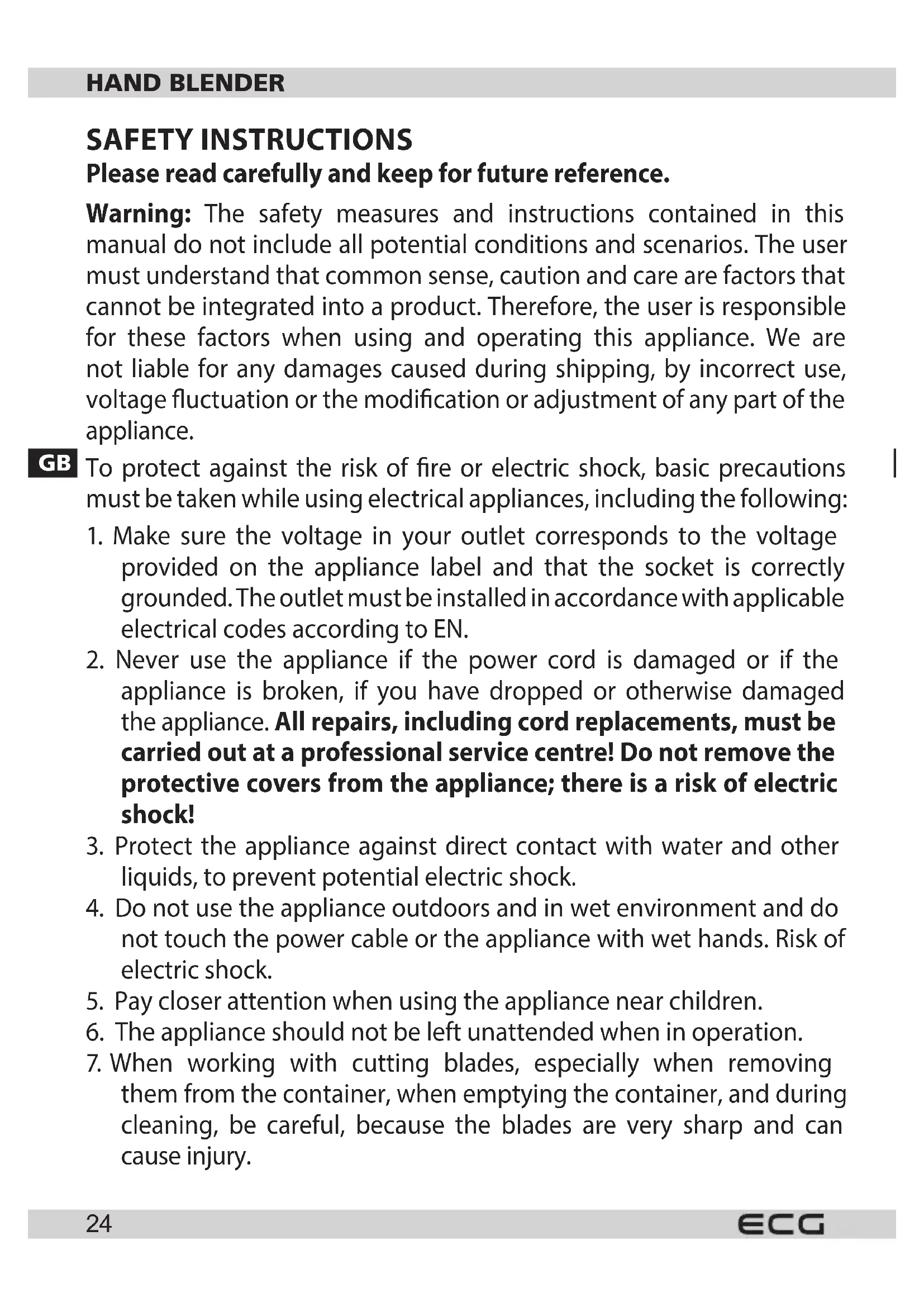 Download the instructions for your Hand blender in PDF format for free! Find your manual RM 430 - ECG and take your electronic device back in hand. On this page are published all the documents necessary for the use of your device. RM 430 by ECG.