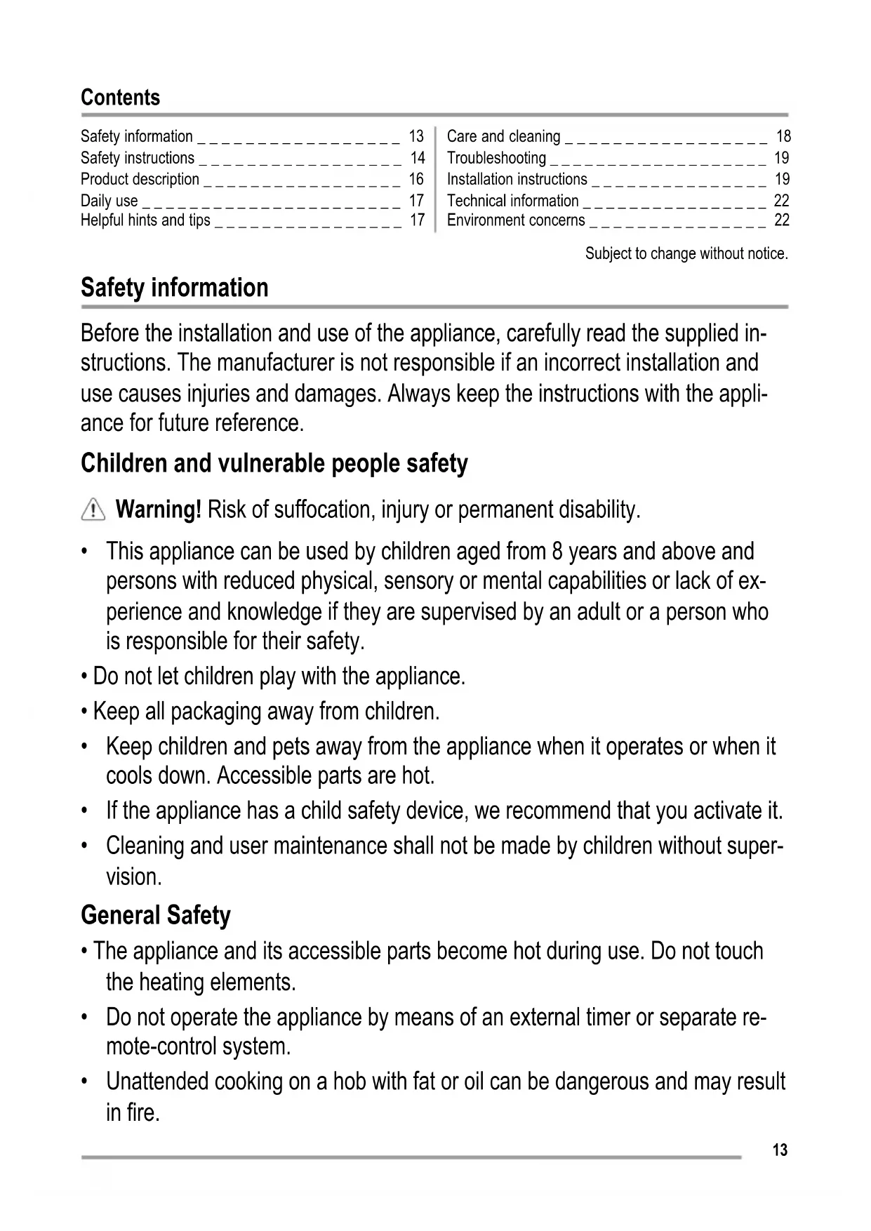 - This appliance can be used by children aged from 8 years and above and persons with reduced physical, sensory or mental capabilities or lack of ex- perience and knowledge if they are supervised by an adult or a person who is responsible for their safety.
