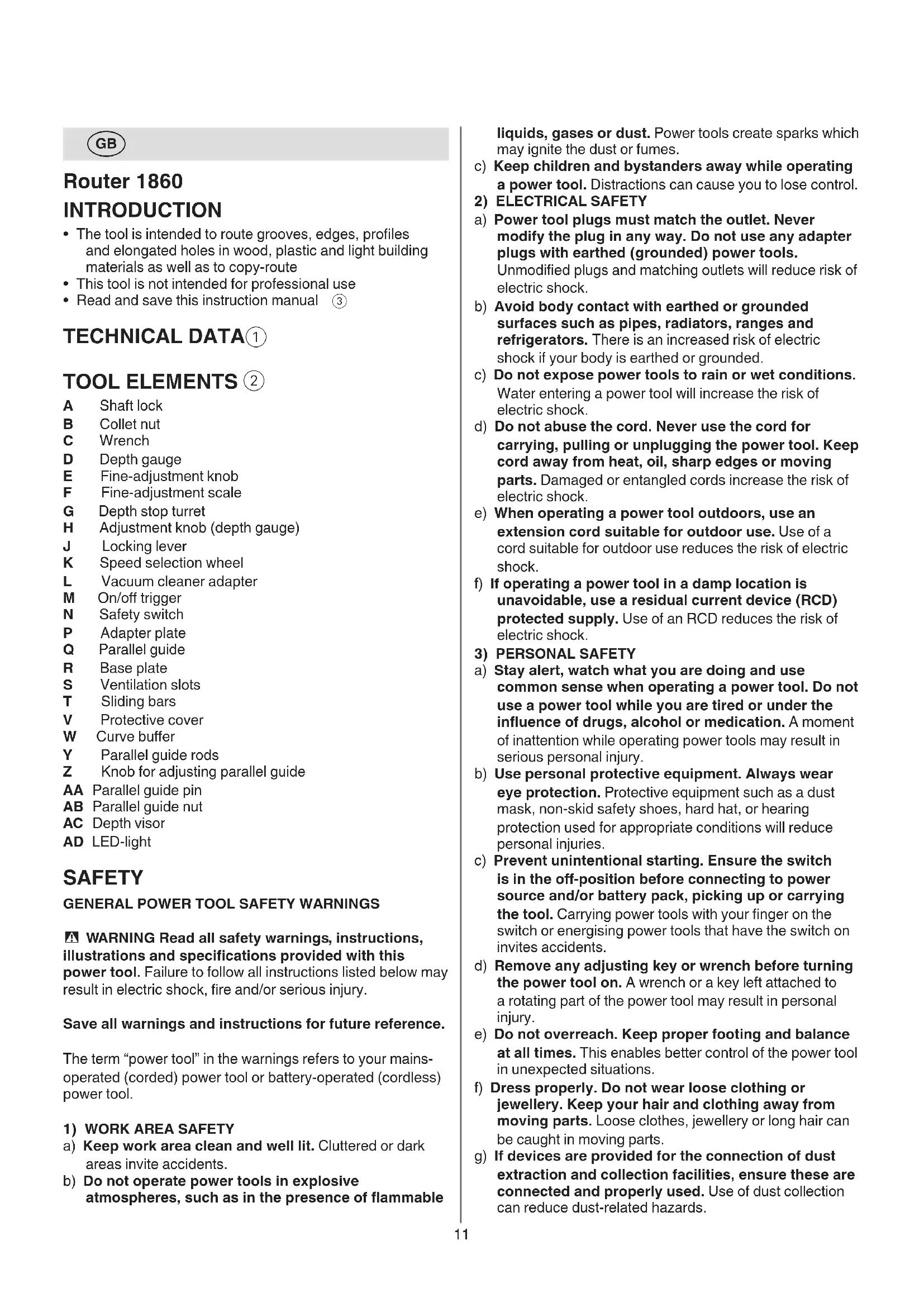 f) If operating a power tool in a damp location is unavoidable, use a residual current device (RCD) protected supply. Use of an RCD reduces the risk of electric shock.