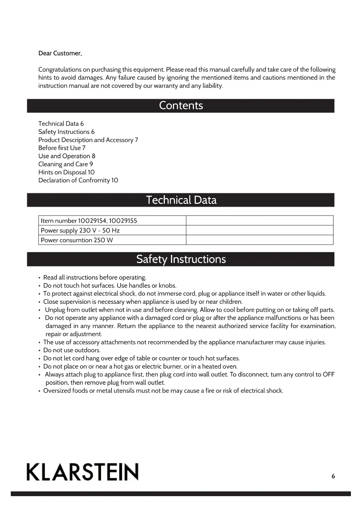 Download the instructions for your Food Processor in PDF format for free! Find your manual 10029154 - Klarstein and take your electronic device back in hand. On this page are published all the documents necessary for the use of your device. 10029154 by Klarstein.