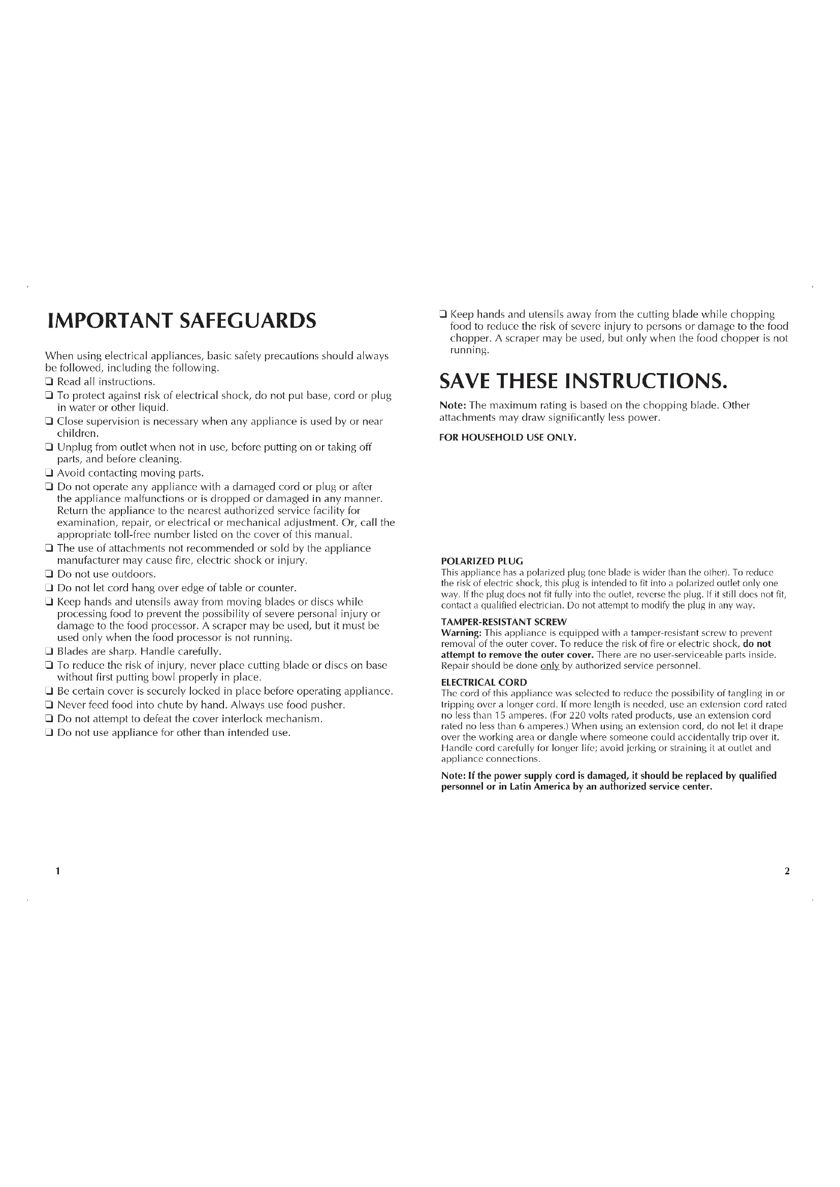 - After food has been processed, remove the cover and invert on countertop. CareandCleaning This product contains no user serviceable parts. Refer service to qualified service personnel. Note: Do not attempt to sharpen the cutting edges of the blades or discs. They are permanently sharpened at the factory and will be ruined by attempted sharpening. CAREANDCLEANING Note: Before cleaning, be sure unit is turned off and cord is unplugged.