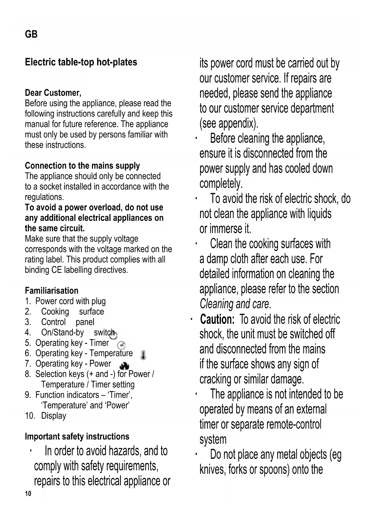 its power cord must be carried out by our customer service. If repairs are needed, please send the appliance to our customer service department (see appendix).