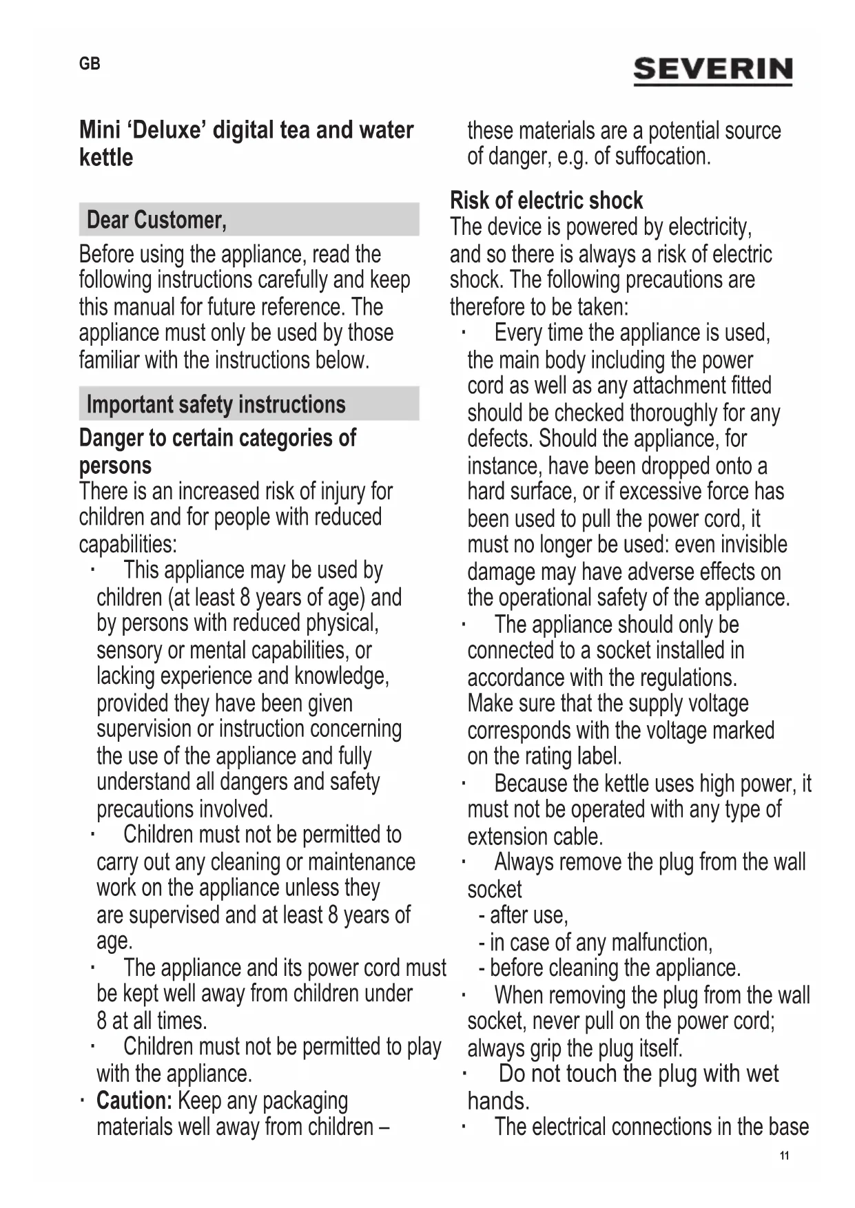 WK 3473 - Kettle SEVERIN - Free user manual and instructions