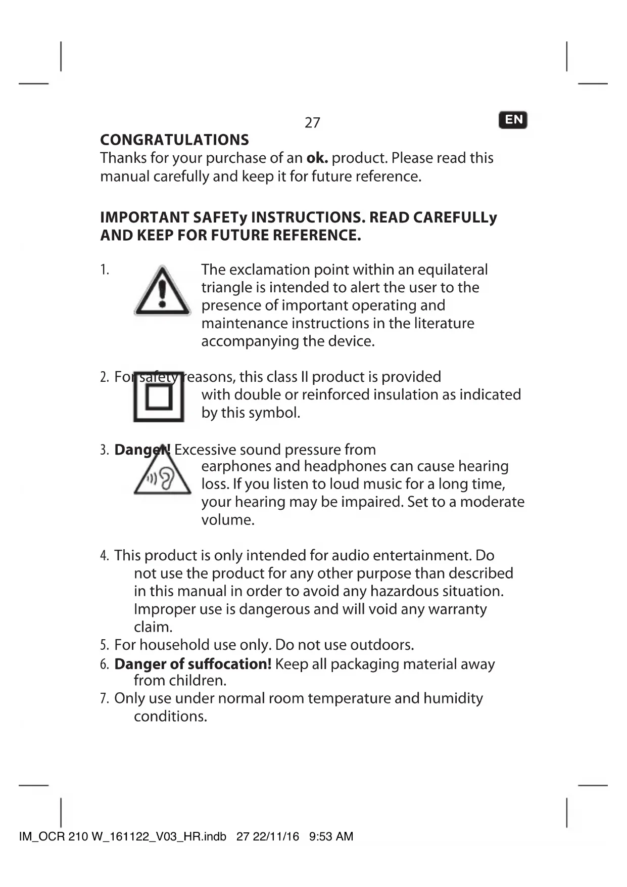 CONGRATULATIONS Thanks for your purchase of an ok. product. Please read this manual carefully and keep it for future reference. IMPORTANT SAFETy INSTRUCTIONS. READ CAREFULLy AND KEEP FOR FUTURE REFERENCE.