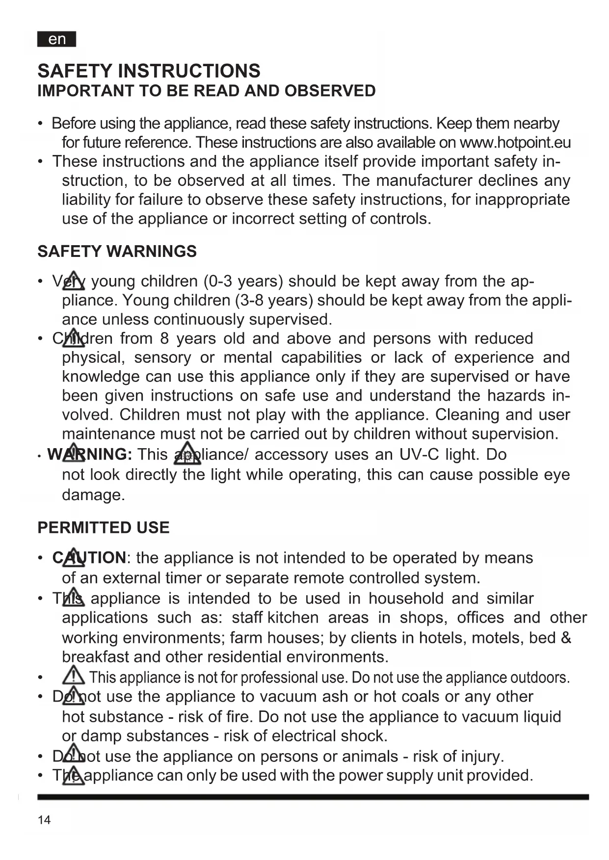 - Before using the appliance, read these safety instructions. Keep them nearby for future reference. These instructions are also available on www.hotpoint.eu