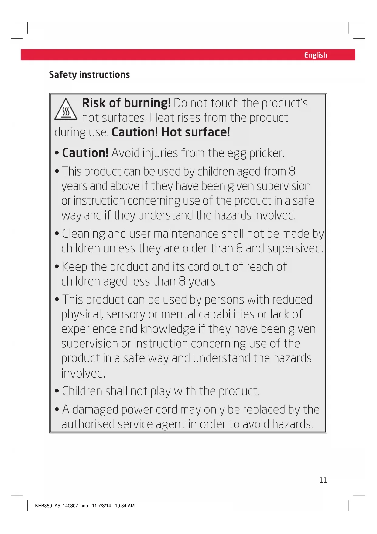 - This product can be used by children aged from 8 years and above if they have been given supervision or instruction concerning use of the product in a safe way and if they understand the hazards involved.