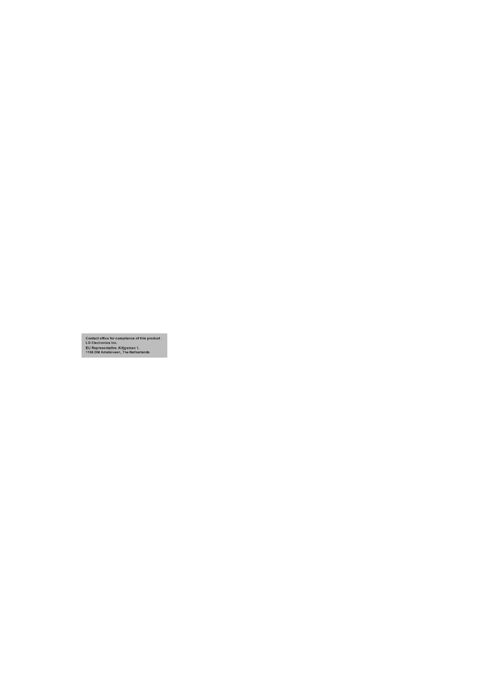 A rechargeable battery has a long service life if treated properly. A new battery or one that has not been used for a long period of time could have reduced capacity the first few times it is used. Do not expose the battery to extreme temperatures, never above +60° or below -10°. For maximum battery capacity, use the battery in room temperature. If the battery is used in low temperatures, the battery capacity will be reduced. The battery can only be charged in temperatures between +10° and +45°.17 ENG ENG Additional Information Removal of waste batteries and accumulators (Product with embedded battery ONLY) - In case this product contains a battery incorporated within the product which cannot be readily removed by end-users, LG recommends that only qualified professionals remove the battery, either for replacement or for recycling at the end of this product’s working life. To prevent damage to the product, and for their own safety, users should not attempt to remove the battery and should contact LG Service Helpline, or other independent service providers for advice. - Removal of the battery will involve dismantling of the product case, disconnection of the electrical cables/ contacts, and careful extraction of the battery cell using specialized tools. If you need the instructions for qualified professionals on how to remove the battery safely, please visit http://www.lge.com/global/sustainability/ environment/take-back-recycling.