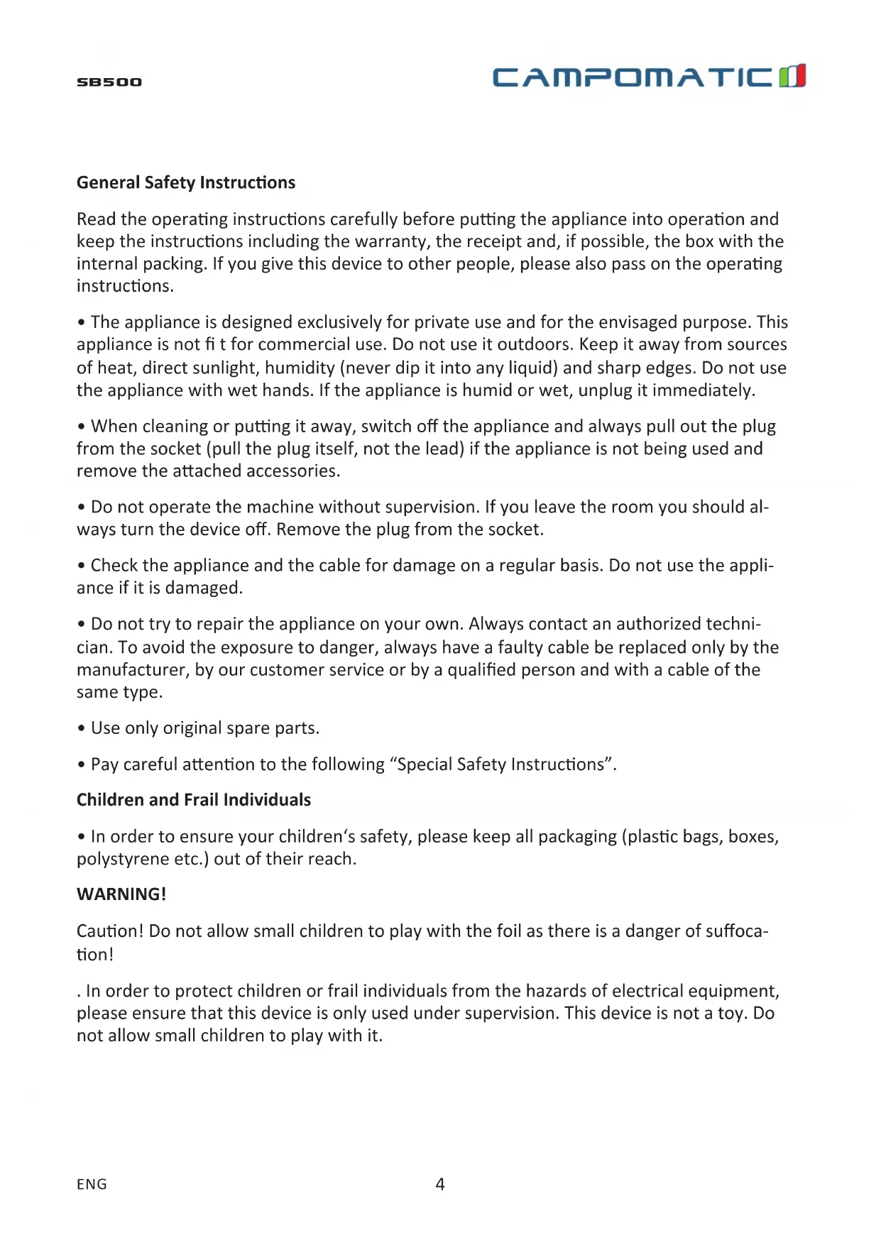 SB500 - Hand blender Campomatic - Free user manual and instructions