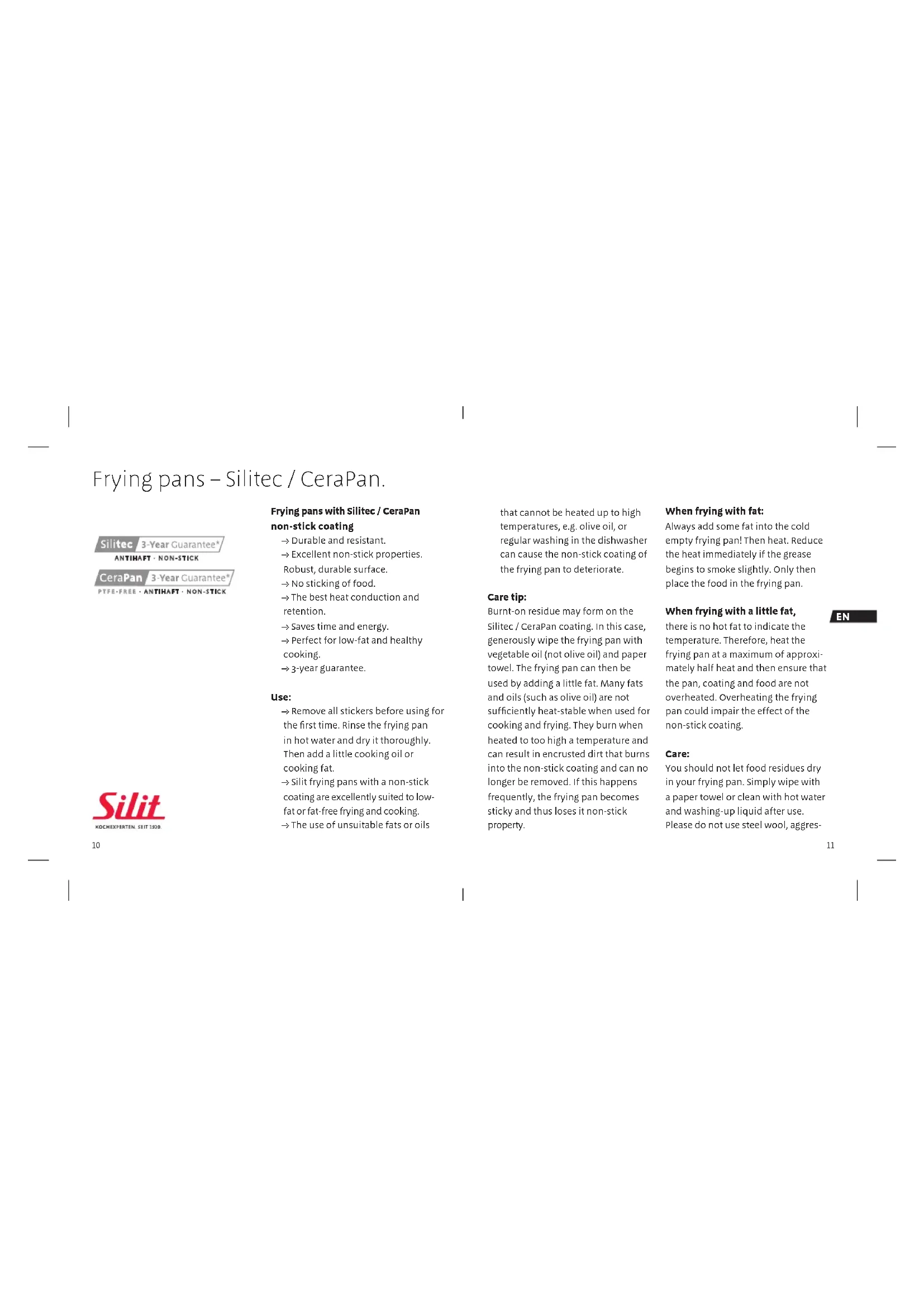 → Silit frying pans with a non-stick coating are excellently suited to low-fat or fat-free frying and cooking.