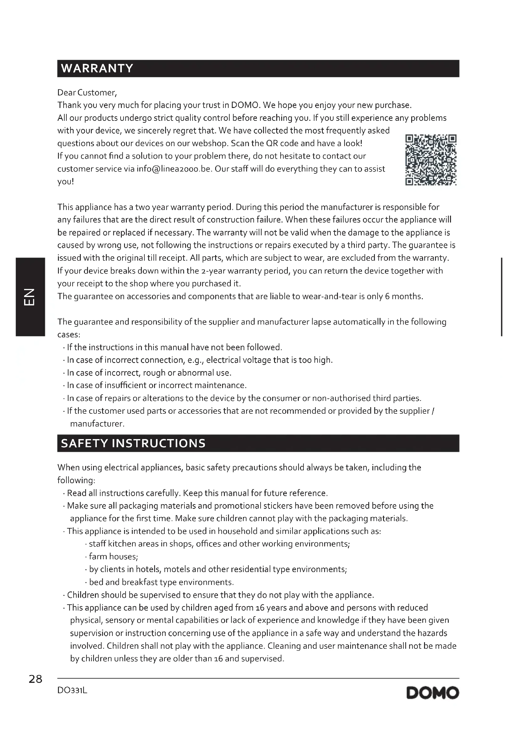 Download the instructions for your Vacuum packaging machines in PDF format for free! Find your manual DO331L - DOMO and take your electronic device back in hand. On this page are published all the documents necessary for the use of your device. DO331L by DOMO.