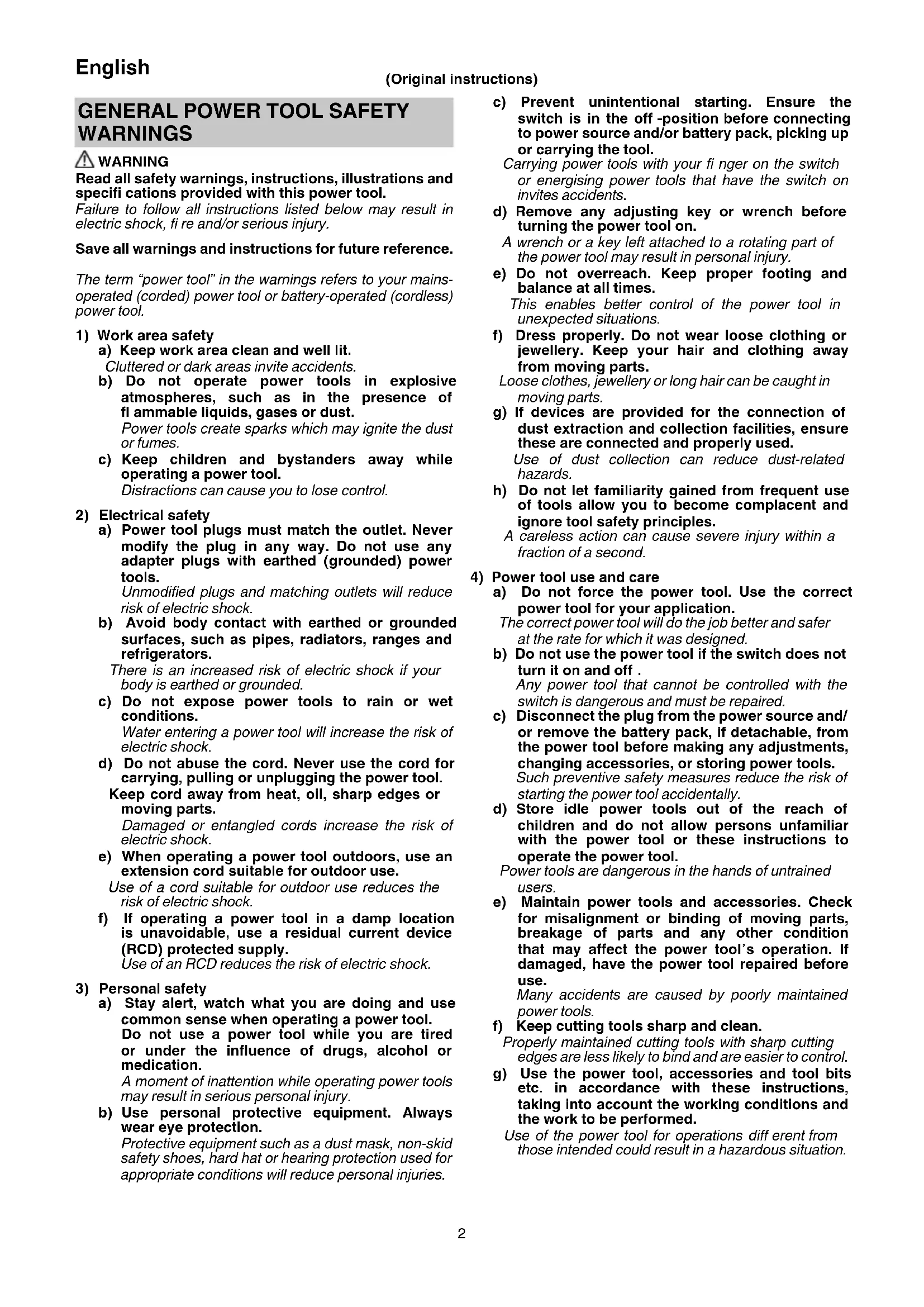 GENERAL POWER TOOL SAFETY