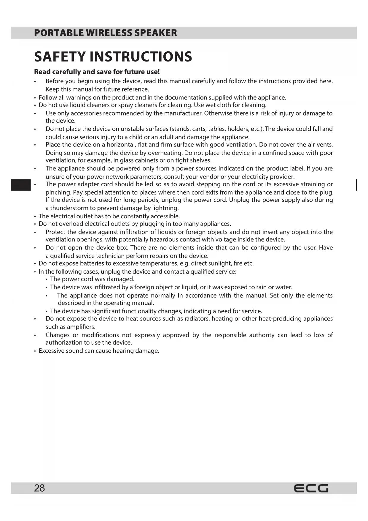 Download the instructions for your Speaker in PDF format for free! Find your manual BTS Elysium S1 - ECG and take your electronic device back in hand. On this page are published all the documents necessary for the use of your device. BTS Elysium S1 by ECG.