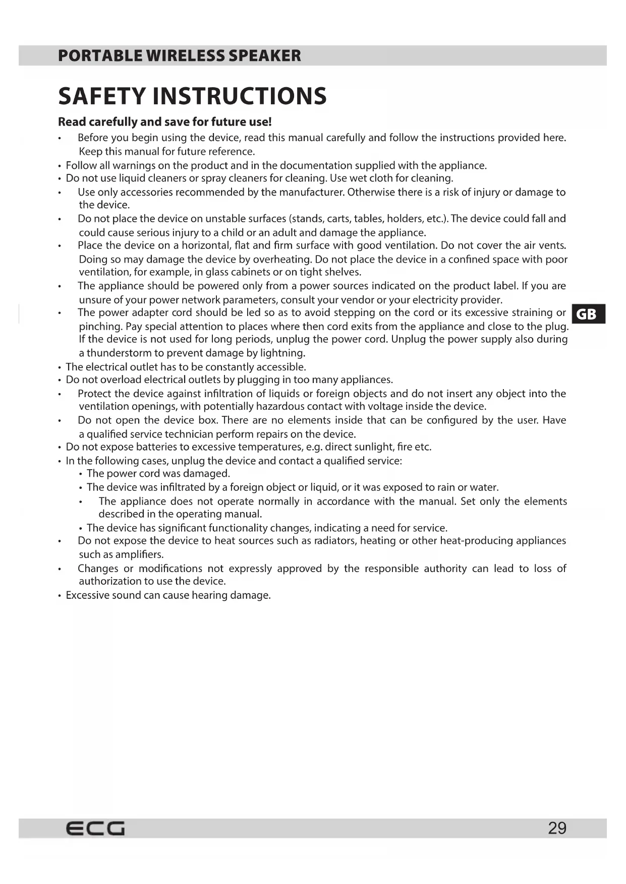 Download the instructions for your Speaker in PDF format for free! Find your manual BTS Elysium X1 - ECG and take your electronic device back in hand. On this page are published all the documents necessary for the use of your device. BTS Elysium X1 by ECG.