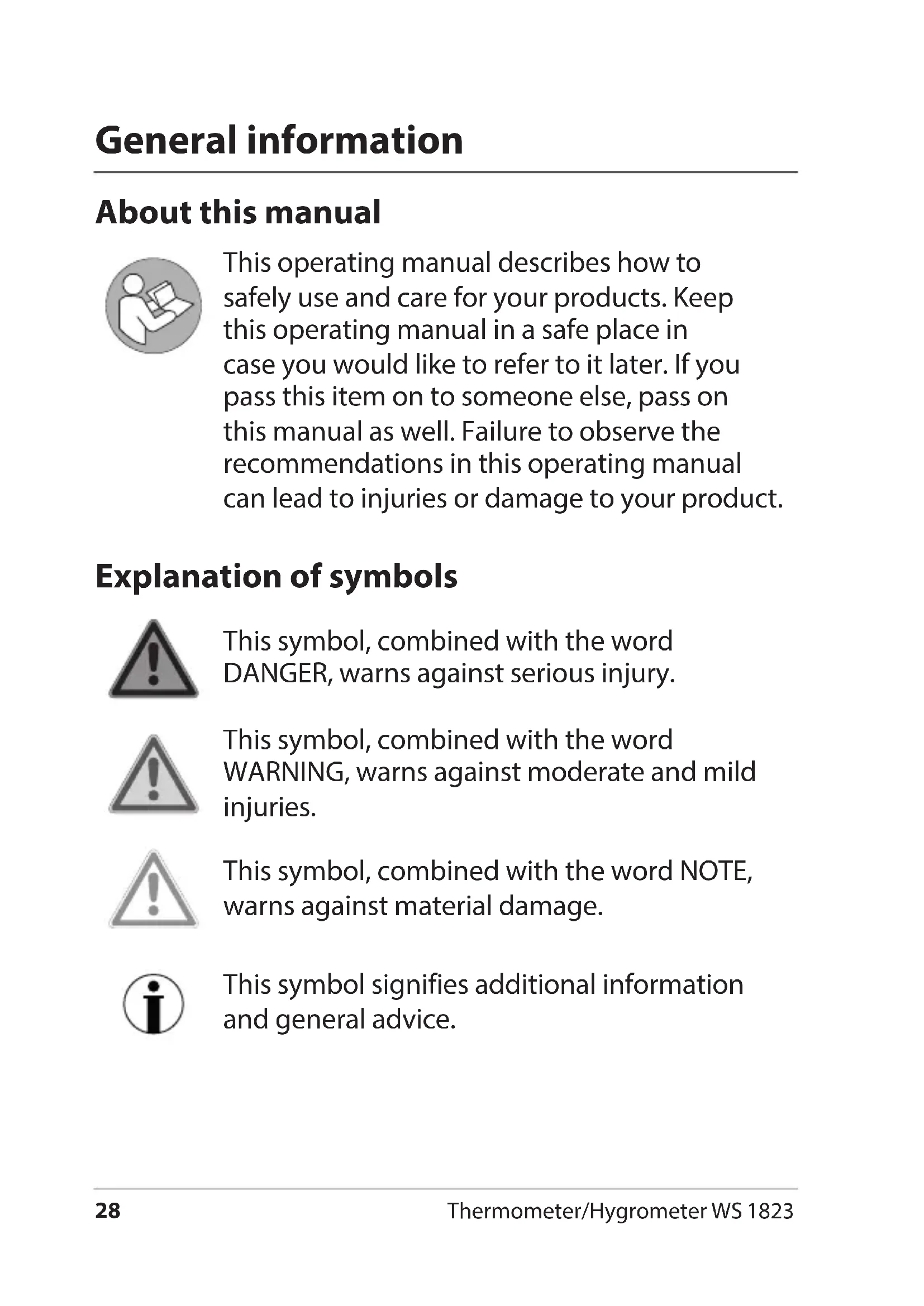 Download the instructions for your Thermometer Hygrometer in PDF format for free! Find your manual WS 1823 - ADE and take your electronic device back in hand. On this page are published all the documents necessary for the use of your device. WS 1823 by ADE.