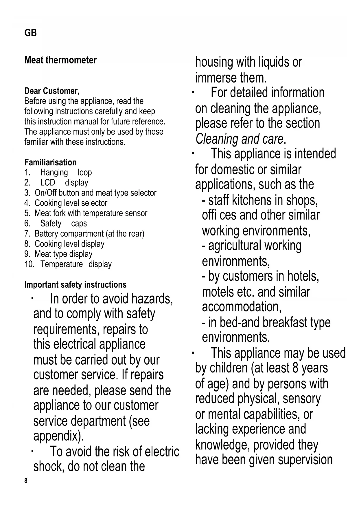 GB Instructions for use Meat thermometer 8