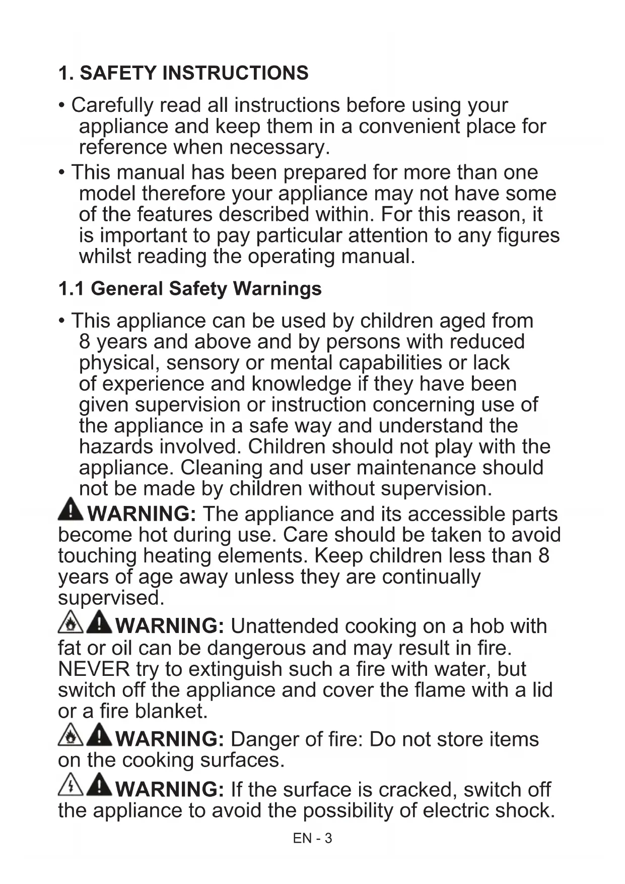 - The temperature of accessible parts may become high while the appliance is operating. Keep children and animalsEN - 14 well away from the hob during operation and until it has fully cooled after operation.