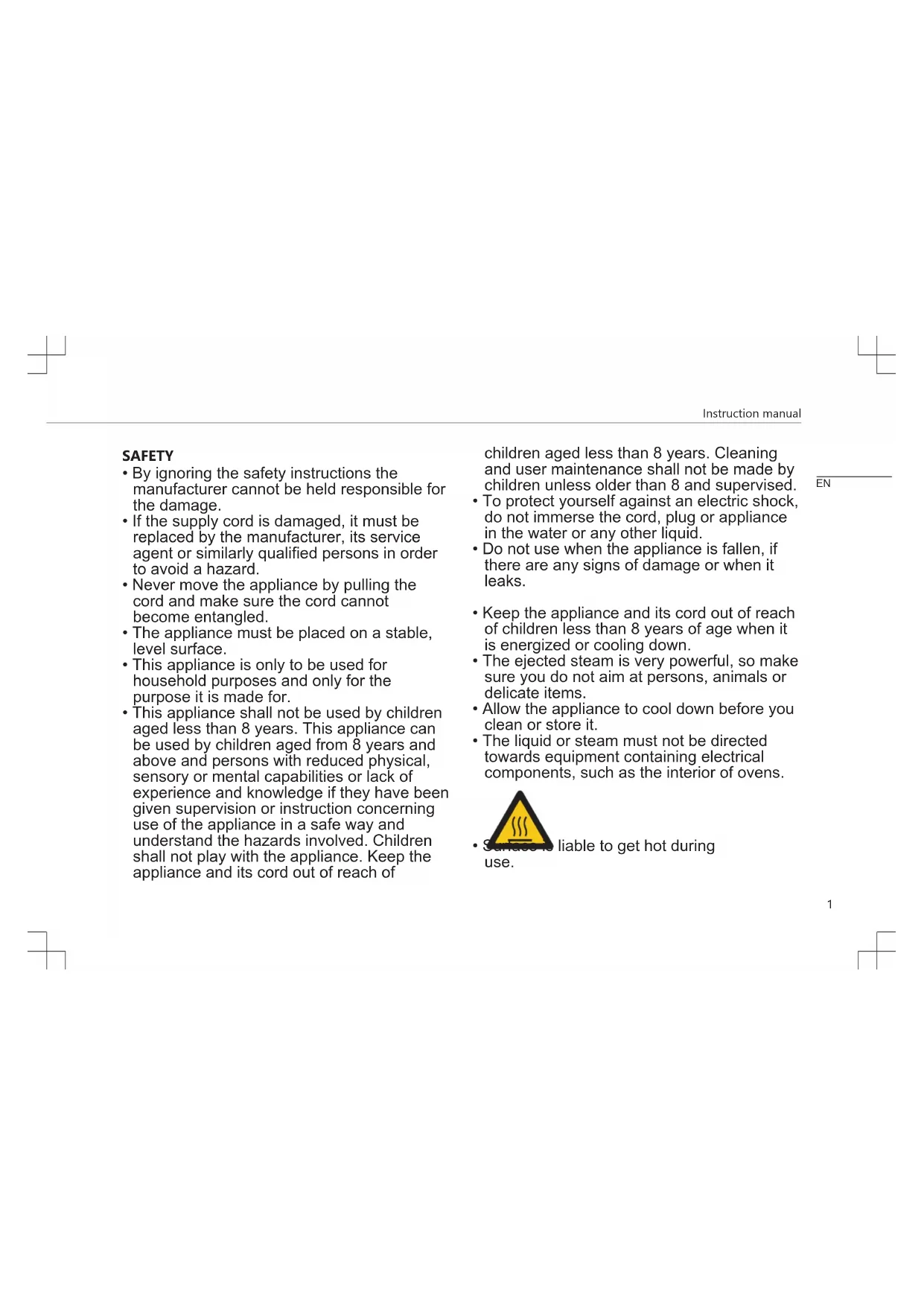 - The ejected steam is very powerful, so make sure you do not aim at persons, animals or delicate items.