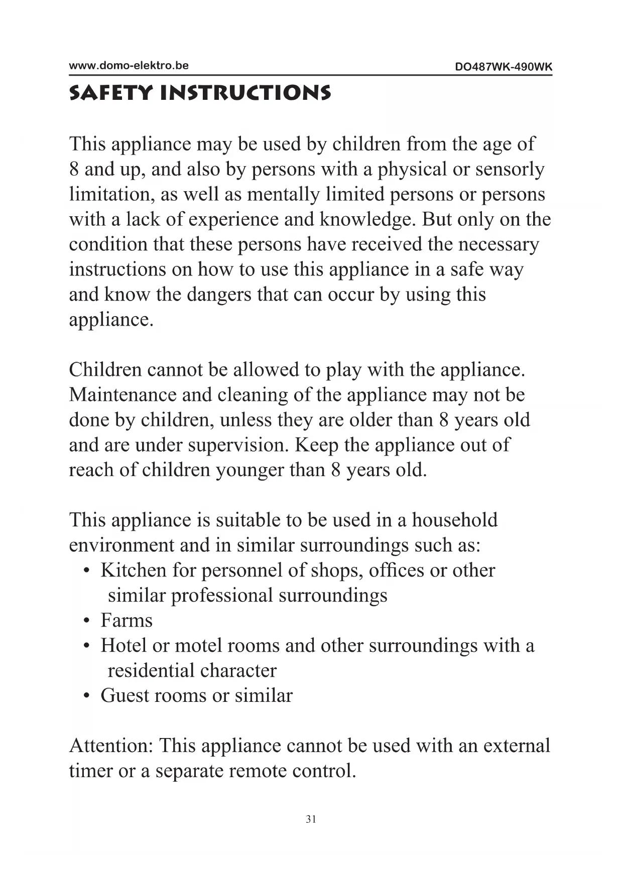 USER MANUAL DO489WK DOMO