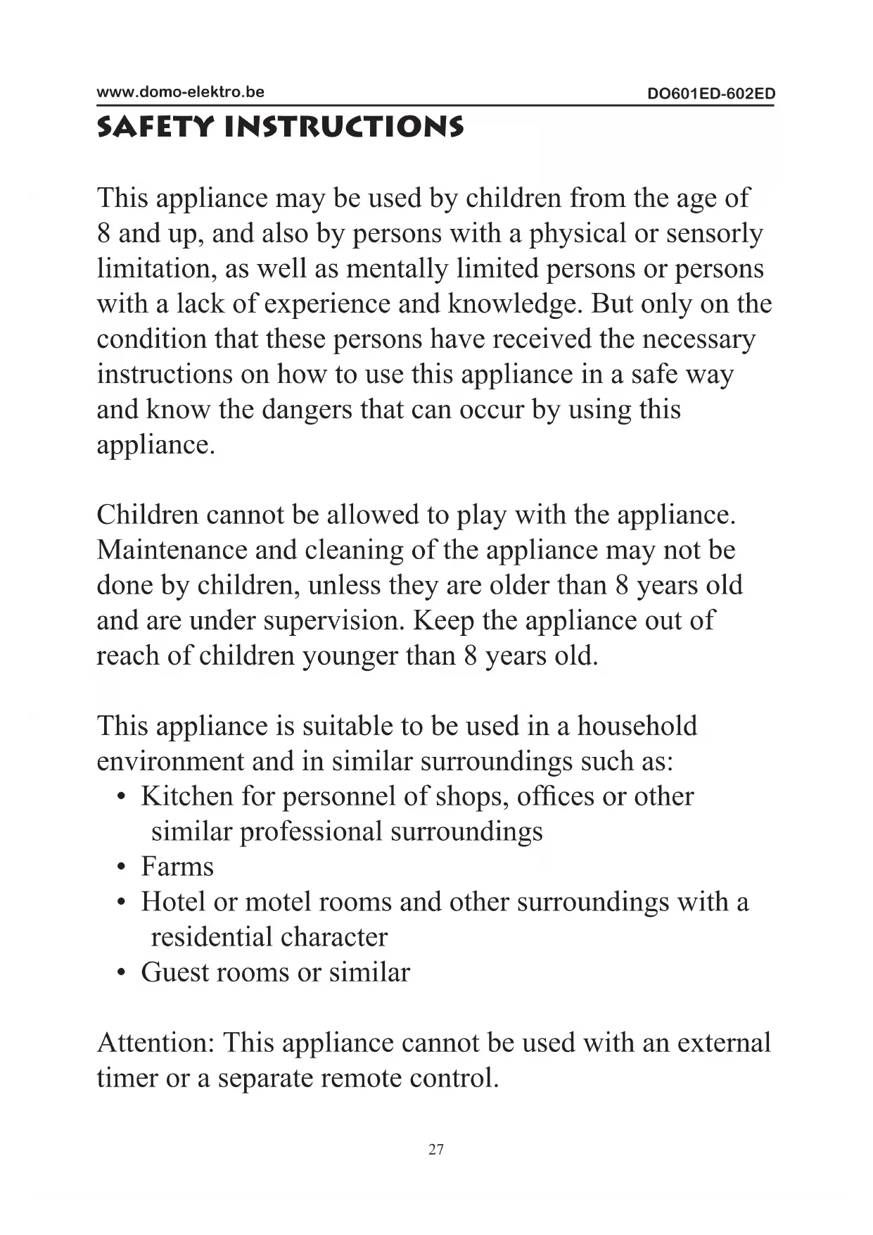 USER MANUAL DO601ED DOMO