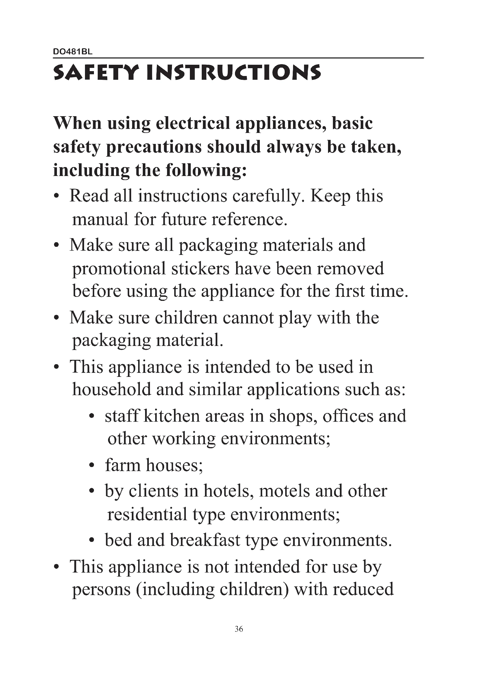 - This appliance is not intended for use by persons (including children) with reducedDO481BL